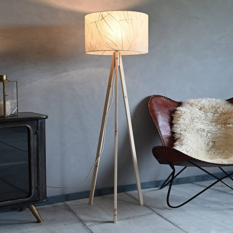 Stojacia lampa Ligno s rámom na trojnožke a tienidlom z listov kaučukovníka Stojacia lampa Ligno sa skladá z rámu z dreva a tienidla z bielo farbených listov kaučukovníka. Tienidlo vyžaruje svetlo bez oslnenia smerom nahor a nadol a cez žilky listov získava individuálne zrno. Vďaka kombinácii materiálov a farieb sa stojacia lampa ľahko začlení do rôznych obytných prostredí. S vhodným zdrojom svetla je možné svietidlo stlmiť. Výrobca odporúča používať svetelný zdroj LED. Bavorská spoločnosť LeuchtNatur by chcela svojimi tvarovanými drevenými lampami vniesť viac harmónie a útulnosti do každodenného života, ktorému dominujú rýchle technológie. Výrobca svietidiel kladie veľký dôraz na prírodné materiály, ako aj na ekologickú a udržateľnú výrobu.