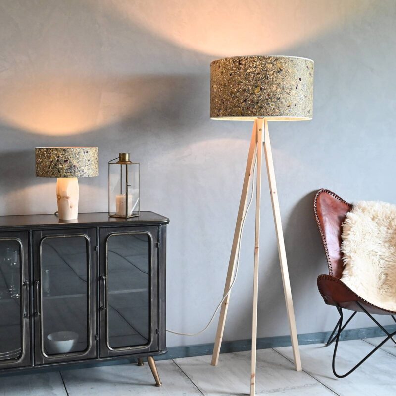Trojnožková stojacia lampa Ligno s tienidlom z ručne siatého alpského sena Vďaka svojmu neobyčajnému tienidlu z alpského sena sa stojaca lampa Ligno stane ozdobou každého obytného priestoru. Ručne vysiate seno pochádza z Rakúska, neobsahuje škodlivé látky a naplní miestnosť nezameniteľnou vôňou. Okvetné lístky zakomponované do tienidla tiež dodávajú krásne farebné akcenty a robia každú lampu jedinečnou. Trojnohý rám je vyrobený z masívneho dreva. S vhodnou LED žiarovkou je možné stojaciu lampu stlmiť. Ligno kombinuje moderný dizajn s regionálnymi materiálmi, ktoré odrážajú spojenie s prírodou a útulnosťou. Bavorský výrobca LeuchtNatur chce v dobe, ktorá je charakteristická technológiou a rýchlym tempom, postaviť tento aspekt do popredia a vniesť viac harmónie do nášho moderného každodenného života. Mimoriadne dôležitá je aj udržateľná a ekologická výroba v Nemecku.