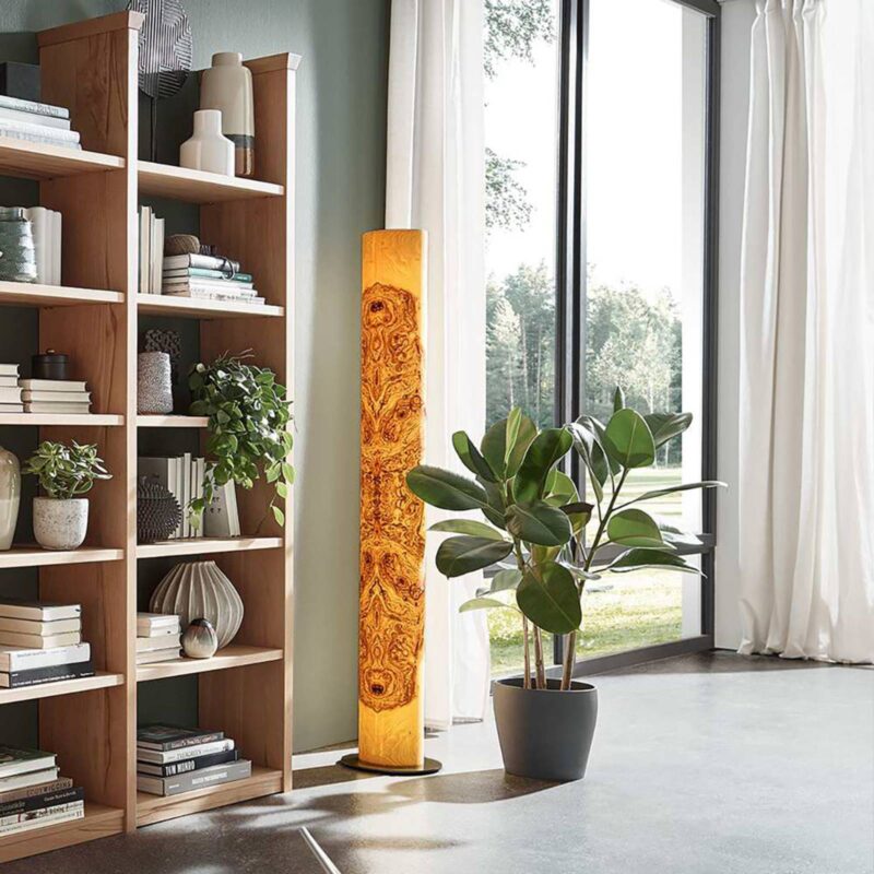 LED stojaca lampa Lucerna v dyhovej farbe dreva Dizajn stojacej lampy Lucerna LED vychádza zo stromu vyrastajúceho zo zeme a presviedča svojím nadčasovým, jasne definovaným dizajnom. Teplé hnedé tóny vytvárajú v obytnom prostredí príjemnú a útulnú atmosféru. Stojacia lampa je vyrobená z tenkej priesvitnej dýhy, vďaka ktorej po zapnutí farebne intenzívne žiari. Integrovaná žiarovka LED sa stará aj o rovnomerné, mäkké a nepriame osvetlenie. Použité drevo pochádza najmä z Nemecka a Rakúska. Bavorská spoločnosť LeuchtNatur kladie veľký dôraz na ekologickú a udržateľnú výrobu a používa aj prírodné, regionálne materiály. Cieľom spoločnosti LeuchtNatur je vniesť viac prirodzenosti, útulnosti a harmónie do moderného každodenného života založeného na technológiách prostredníctvom svojich svietidiel.