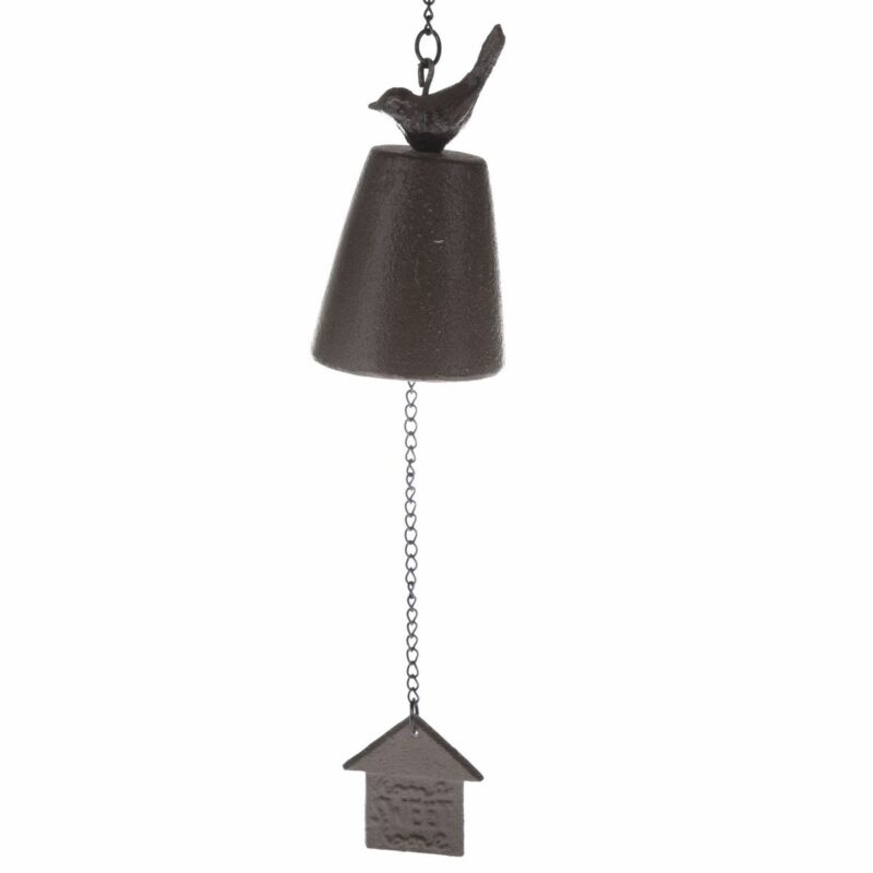 Originálny závesný zvonček má namiesto klasického zvonového srdiečka retiazku, na ktorej je umiestnený malý domček s nápisom. Na hornej časti zvončeka sa nachádza malý vtáčik. Zvonček môžete zavesiť v interiéri aj v exteriéri.