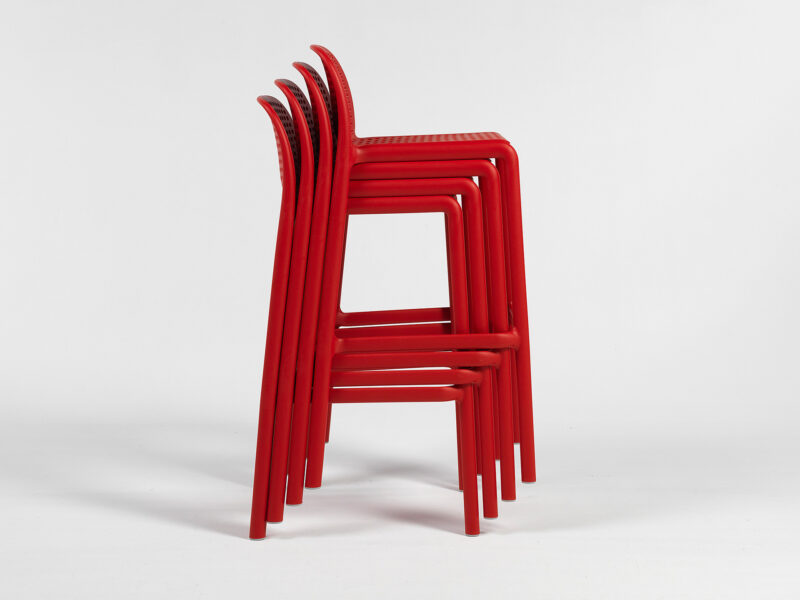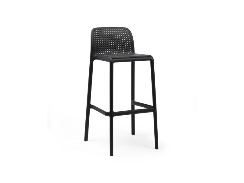 Barová stolička Lido ponúka elegantný dizajn, pohodlie a UV ochranu. Je stohovateľná a stabilná, ideálna pre terasy, záhrady a balkóny.