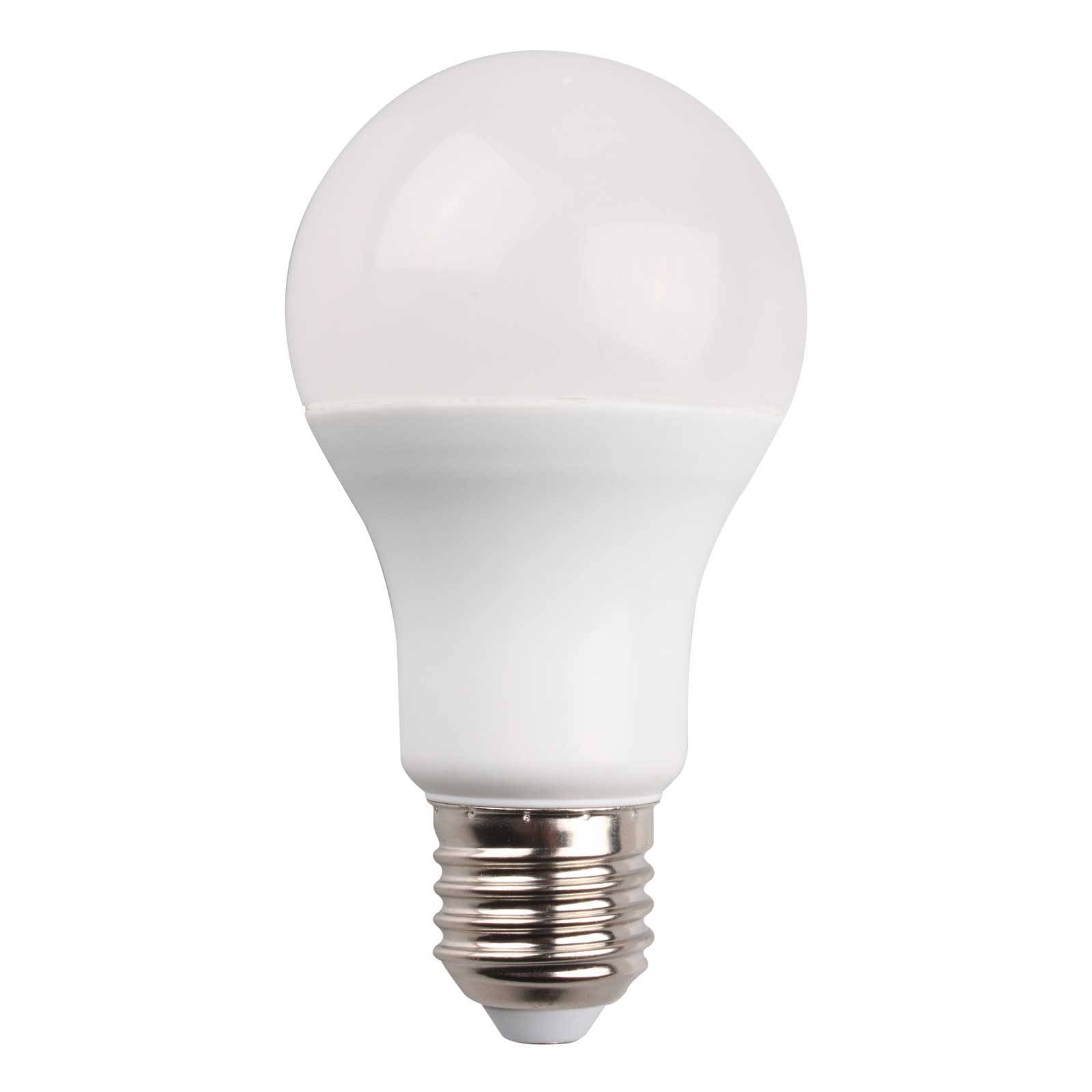 LED žiarovka E27 9 W s RGB-W (viacfarebná 2 700 K) a diaľkovým ovládaním Jas energeticky úspornej žiarovky možno stlmiť a farbu vyžarovaného svetla meniť pomocou diaľkového ovládania, ktoré je súčasťou dodávky. Na výber je 15 rôznych farebných odtieňov a rôzne režimy zmeny farieb.