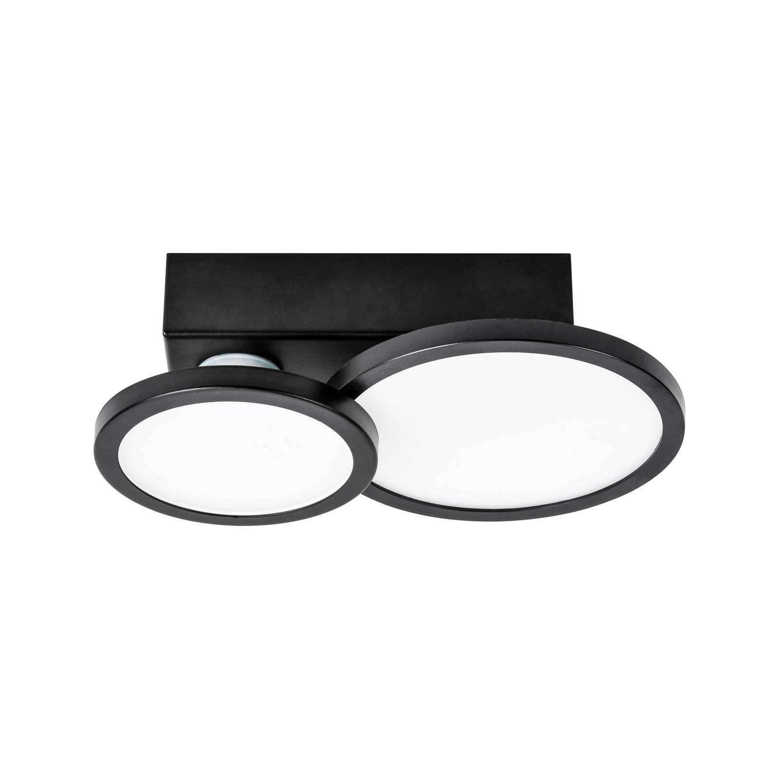 Dvojsvetelné stropné svietidlo LED Aqua s krytím IP44, čierneToto stropné svietidlo LED zo série Aqua zohľadňuje udržateľnosť, pretože je vybavené vymeniteľnými žiarovkami LED s päticou GU10. Špeciálnou vlastnosťou žiaroviek, ktoré sú súčasťou dodávky, je možnosť zmeny farby svetla pomocou vypínača. Viacnásobné prepínanie umožňuje úplne ľubovoľnú voľbu teplého bieleho osvetlenia s teplotou 2 700 K alebo univerzálneho bieleho svetla s teplotou 4 000 K. Matné difúzory zaručujú rovnomerné a málo oslnivé osvetlenie.- s pripojovacou svorkou v kryte s káblovým vstupom- udržateľné vďaka vymeniteľným svetelným zdrojom (pozri príslušenstvo)