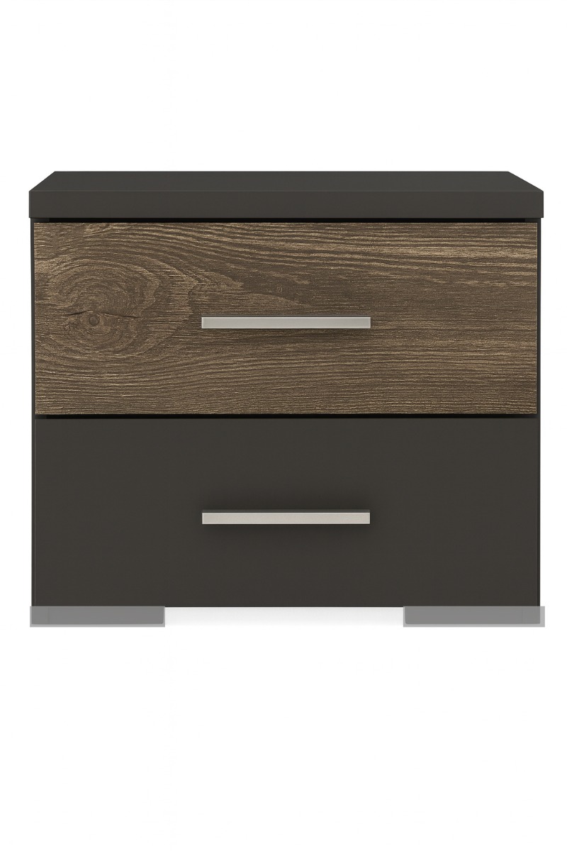 Nábytok do spálne LILIAN NEW predstavuje štýlovú kolekciu nábytku, ktorá umožní komfortné vybavenie spálne. Vysoká funkčnosť jednotlivých súčastí a atraktívny design sú zárukou zákazníkovej spokojnosti.Jednotlivé prvky tejto kolekcie sa môžu pochváliť vysokou kvalitou prevedenia, precíznym spracovaním a v neposlednom rade štýlovým dizajnom v elegantnom farebnom prevedení.Nočný stolík LILIAN NEW je vyrobený v elegantnom modernom štýle. Ponúka praktický úkožný priestor v podobe dvoch zásuviek. Celkové rozmery: 454 x 427 x 404 mmMateriál: 16 mm LTDFarebné prevedenie: antracit / dub grunge colonialNábytok dodávame v demonte s návodom na montáž.