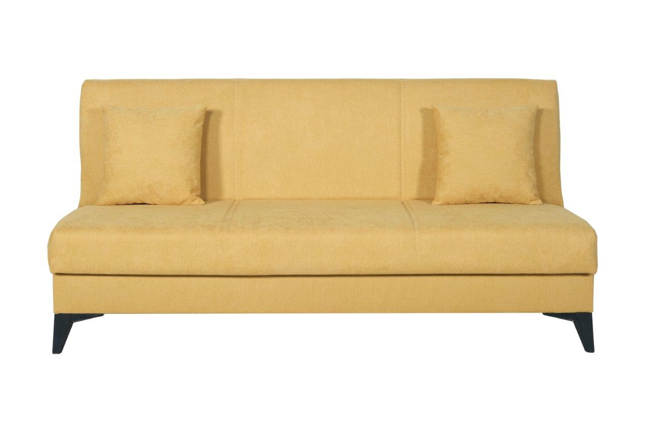 Model LIMAN predstavuje veľmi elegantnú pohovku, ktorú v prípade potreby môžete rozložiť a využiť na príležitostné spanie nielen pre vás, ale aj vašich hostí. Dokonale sa hodí do malých bytov a kancelárií. Vďaka jej menším rozmerom a vysokým nožičkám bude interiér vyzerať priestrannejší a vzdušnejší. Pohodlná moderná pohovka LIMAN s funkciou spania bude praktickým kúskom do každého interiéru pre každodenný odpočinok. Za komfort sedenia a spania sú zodpovedné pružiny Bonnell a vysoko kvalitná PUR pena. Úložný priestor pod sedákom ocení každý majiteľ. Sedačka je čalúnená kvalitnou žltou poťahovou látkou a stojí na čiernych plastových nožičkách.Špecifikácia:spacia plocha po rozložení: 182×108 cmcelkové rozmery: H:78 / Š:185 / V:90 cmDodávame v demonte.