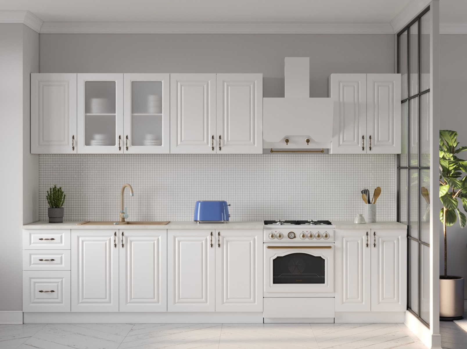 LINCOLN 180 vintage kuchynská linka MDF, vanilka/biela