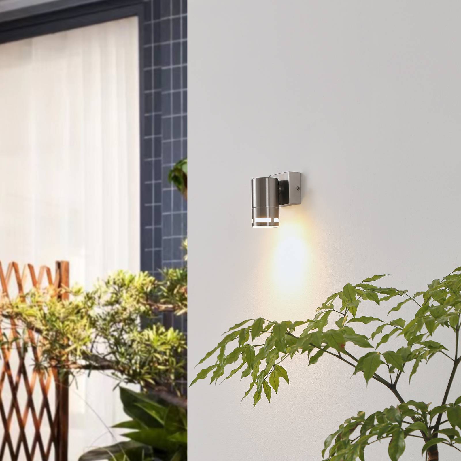 Vysokokvalitné vonkajšie nástenné svietidlo Azemina z nehrdzavejúcej ocele V4AToto vonkajšie nástenné svietidlo s tienidlom v tvare valca sa vyznačuje mimoriadnou robustnosťou, ktorá je v neposlednom rade spôsobená vysokokvalitným povrchom z nehrdzavejúcej ocele V4A, ktorý možno používať aj v blízkosti morskej vody bez rizika poškodenia koróziou. Do objímky možno namontovať žiarovku podľa vlastného výberu a tri drážky v tienidle, ako aj priehlbiny v blízkosti žiarovky individualizujú vzhľad, ktorý sa vyznačuje zásadným moderným nádychom.