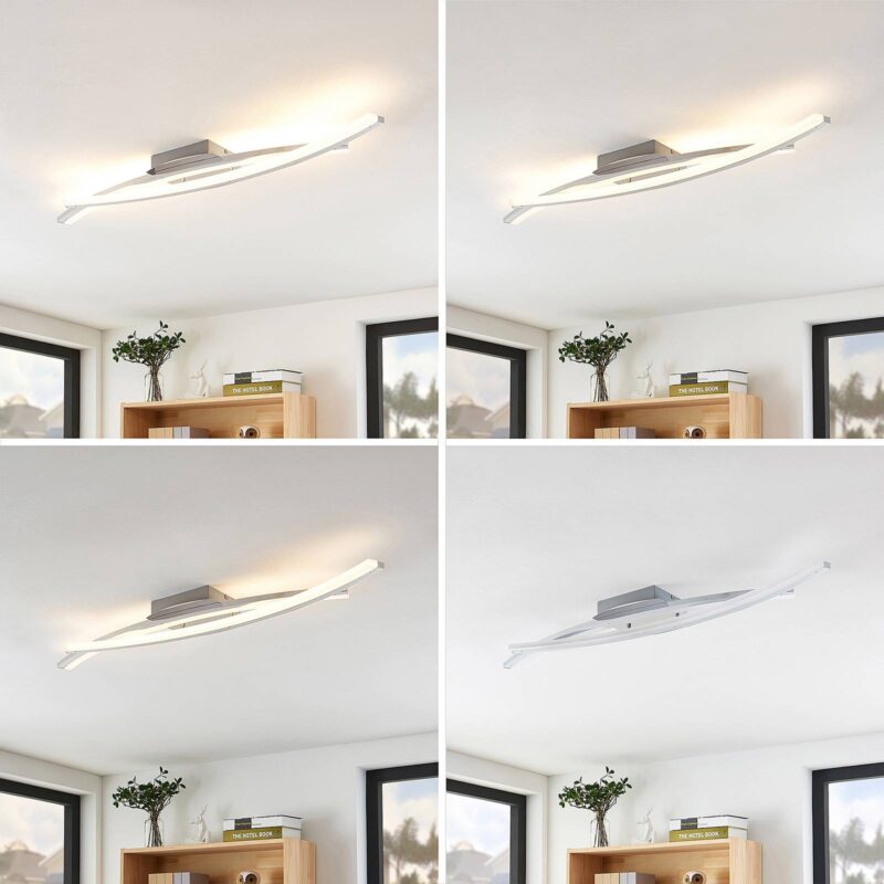 Stmievateľné stropné LED svietidlo Elarit s ovládaním prostredníctvom nástenného spínača a dvomi svetelnými oblúkmi Elarit je nepochybne svetelným zdrojom s moderným vzhľadom, ktorý je zvlášť vhodný pre súčasné obytné priestory. Križujú sa tu dve svetelné oblúky, pričom kovový povrch je v lesklom chróme a má tak vznešený vzhľad. V technickom zmysle, stropná LED lampa skóruje skutočnosťou, že ju môžete ľahko tlmiť prostredníctvom nástenného spínača. Ak je spínač stlačíte niekoľkokrát v krátkych intervaloch, je možné nastaviť jas v troch stupňoch. Vďaka dobrému svetelnému výkonu LED diód je stropné svietidlo vynikajúcim zdrojom svetla na zabezpečenie základného osvetlenia obytného priestoru.