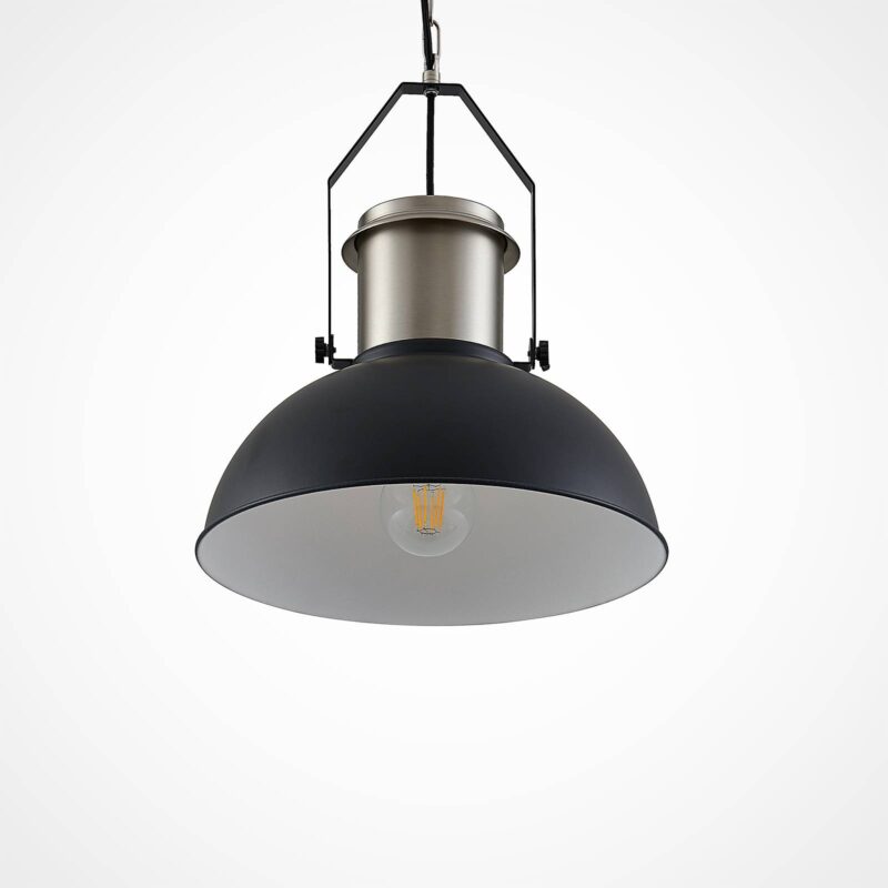 Závesné svietidlo Freitjof z čierneho kovu s detailmi v matnom nikle Závesné svietidlo Freitjof vnáša do kuchyne alebo jedálne kúsok priemyselného dizajnu. To je dôvod, prečo je široký odtieň, ktorý je zvonka natretý čiernou farbou a zvnútra bielou farbou, zavesený v držiaku a skosenie je na rozdiel od odtieňa vyrobené v matno-niklovej farbe. Široké vnútro umožňuje optimálne odrážať svetlo zo žiarovky a zaisťuje maximálny svetelný výkon. Tienidlo je možné v konzole pootočiť a zafixovať v požadovanom sklone, aby bol svetelný kužeľ na rozdiel od nenastaviteľných závesných žiaroviek možné mierne vyrovnať aj pod určitým uhlom. Farbu a intenzitu svetla je možné individuálne určiť výberom svetelného zdroja, pretože okrem žiarovky je možné použiť aj LED žiarovku.