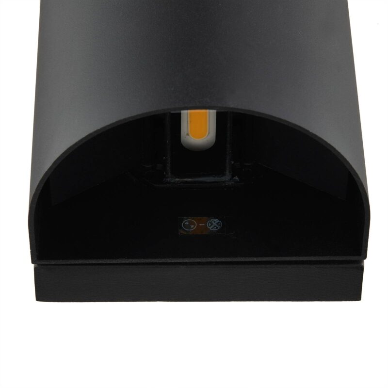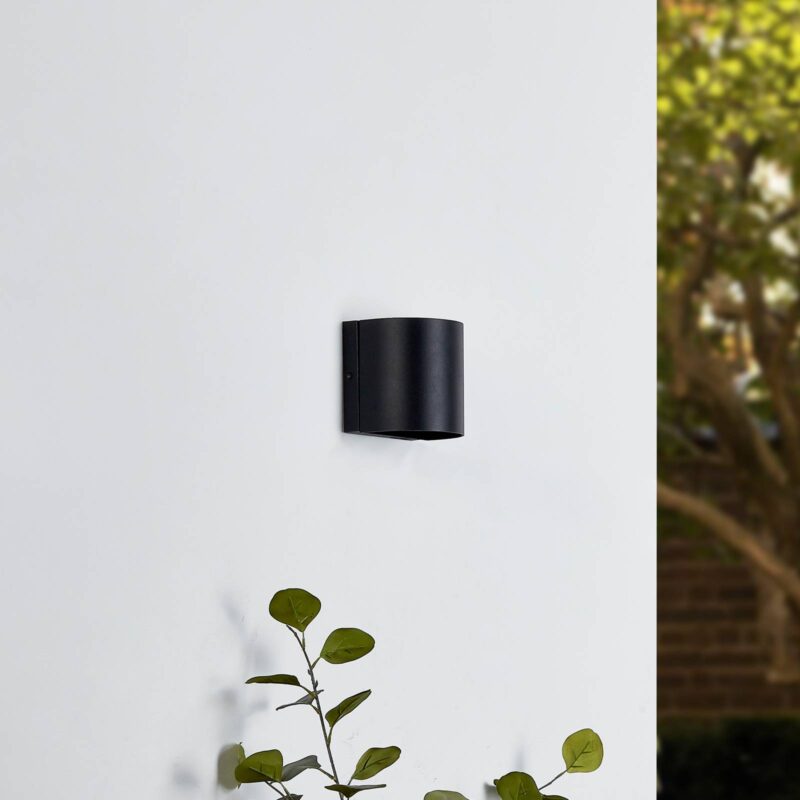 Nastaviteľný výstup svetla – vonkajšie nástenné LED svietidlo Gladis Moderné vonkajšie nástenné svietidlo Gladis je vyrobené z čierneho hliníka a má dve diódy LED, ktoré sú namontované vo vnútri pod čírou sklenenou tabuľou. Svojím teplým bielym farebným tónom svietia klasicky smerom nahor a nadol, takže vzniká pekné Up-& Down svetlo. Môže sa použiť kdekoľvek v exteriéri. Ak musí byť svetlo na výstupe užšie alebo širšie, ako aj v orientácii skôr horizontálnejšie, a teda vyžarujúc do strany namiesto vertikálne a smerom nahor a nadol, svietidlo Gladis môže pomôcť: Predná časť svietidla sa môže otáčať o 360°, a teda sa môže nastaviť tak, aby sa mohol výstup svetla nastaviť individuálne. Malé klapky vo vnútri pomáhajú svetlu diód LED vystupovať širšie alebo užšie. Skutočne sofistikovaný systém, ktorý odlišuje vonkajšie nástenné LED svietidlo Gladis, a robí z neho univerzálny zdroj svetla do exteriéru.