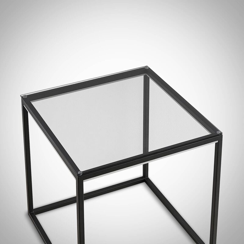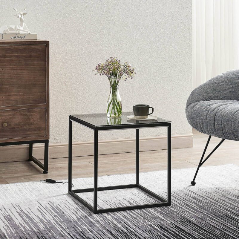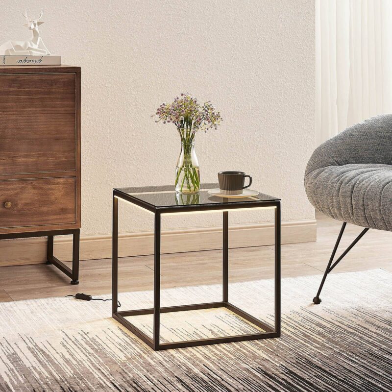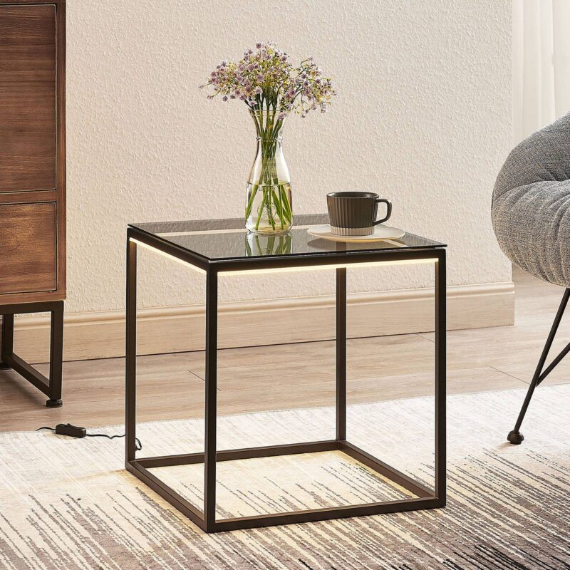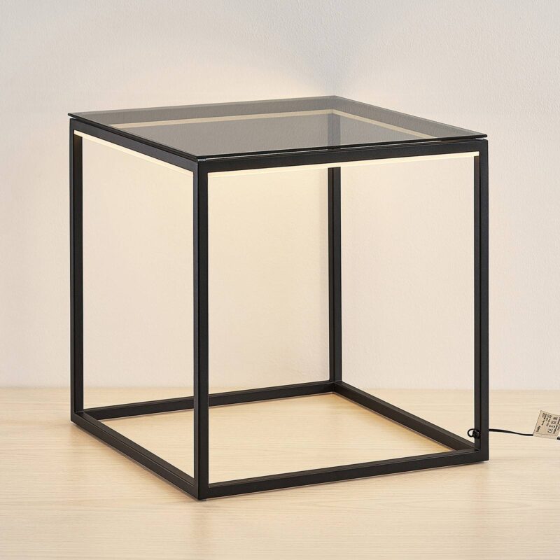 Cuboid LED stolová lampa Kagus s dvojitou funkciou ako svetelný zdroj a stolík Táto špeciálna lampa boduje svojím prepracovaným dizajnom, pretože slúži nielen ako štýlový svetelný zdroj, ale aj ako praktická odkladacia plocha, a tak sa dá použiť ako príručný stolík. Stolná LED lampa Kagus má výrazný rám z čierneho kovu, pričom horná strana je vybavená robustným tvrdeným sklom, a preto je dokonale vhodná ako odkladací priestor. Trvalo nainštalovaný modul LED ponúka teplé biele svetlo, ktoré vyžaruje smerom nadol a poskytuje tak nepriame osvetlenie.