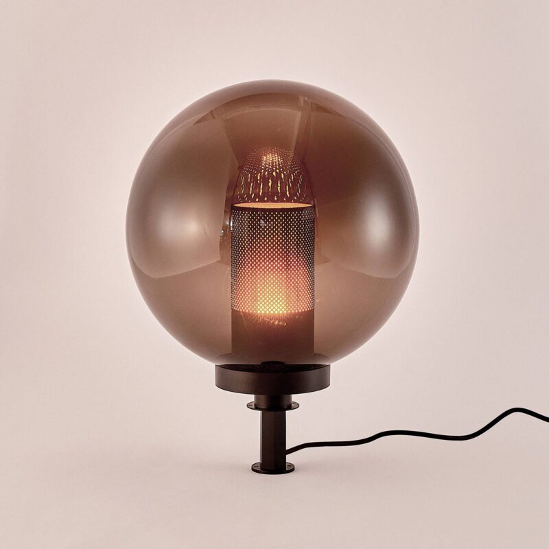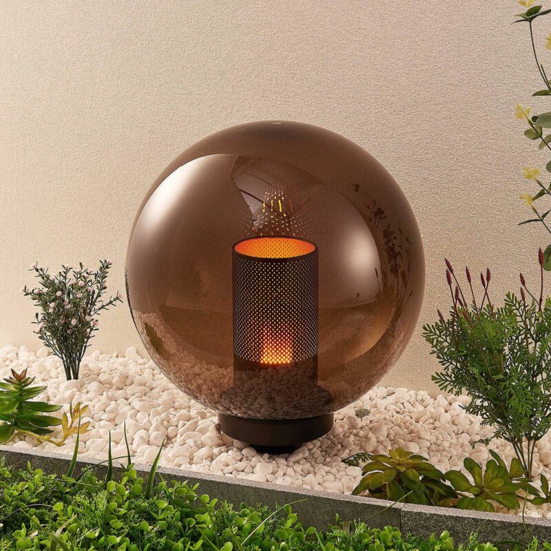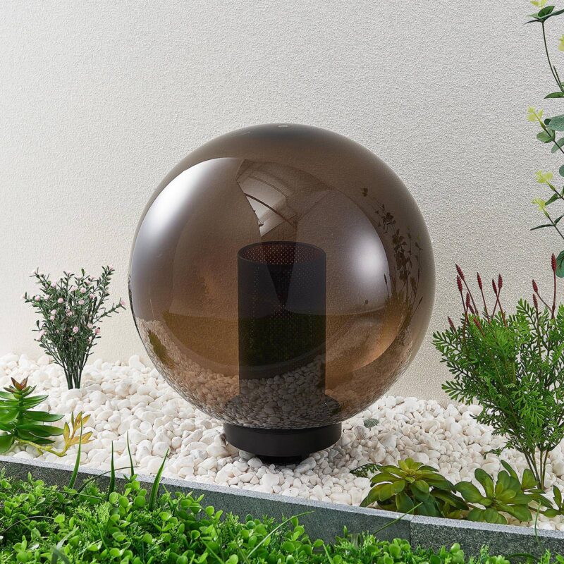 Deco guľová lampa Kibara s praktickým zemným hrotom Deco lampa Kibara upúta pozornosť dymovo sivým tienidlom v klasickom guľovom tvare. Tienidlo vyrobené z plastu spočíva na okrúhlom podstavci – vo vnútri je viditeľný malý difúzor v tvare valca. Z tohto dôvodu možno svietidlo Kibara vybaviť najmä svetelnými zdrojmi v sviečkovej optike. Okrem toho sa dodáva so zemným hrotom, takže sa dá použiť ako bežné terasové svetlo na stôl alebo ako zemný hrot v záhrade.