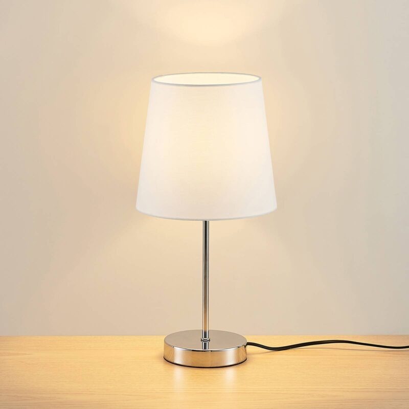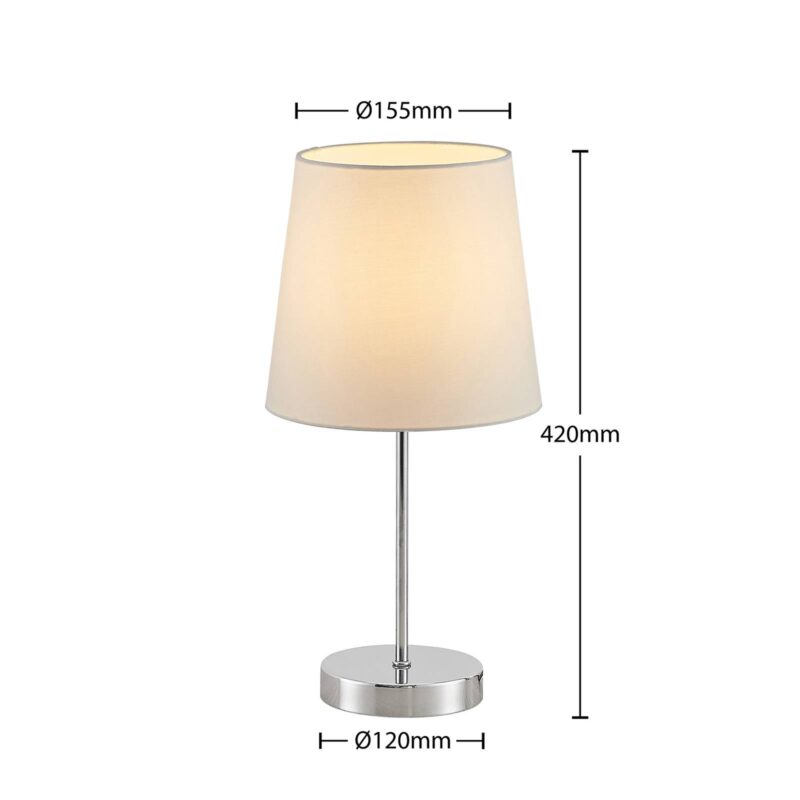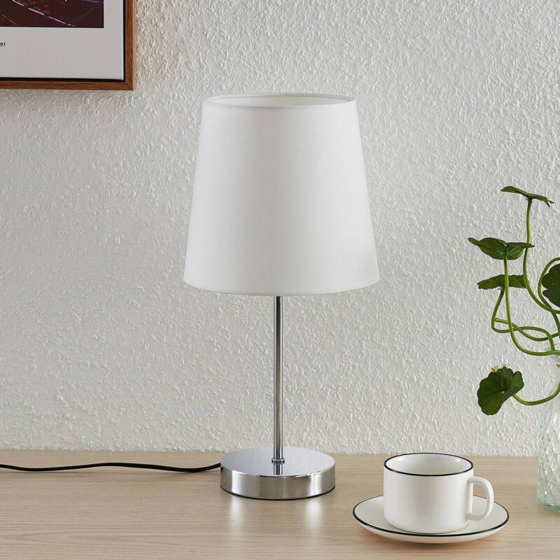 Lindby Leza stolná lampa chróm, tienidlo biele