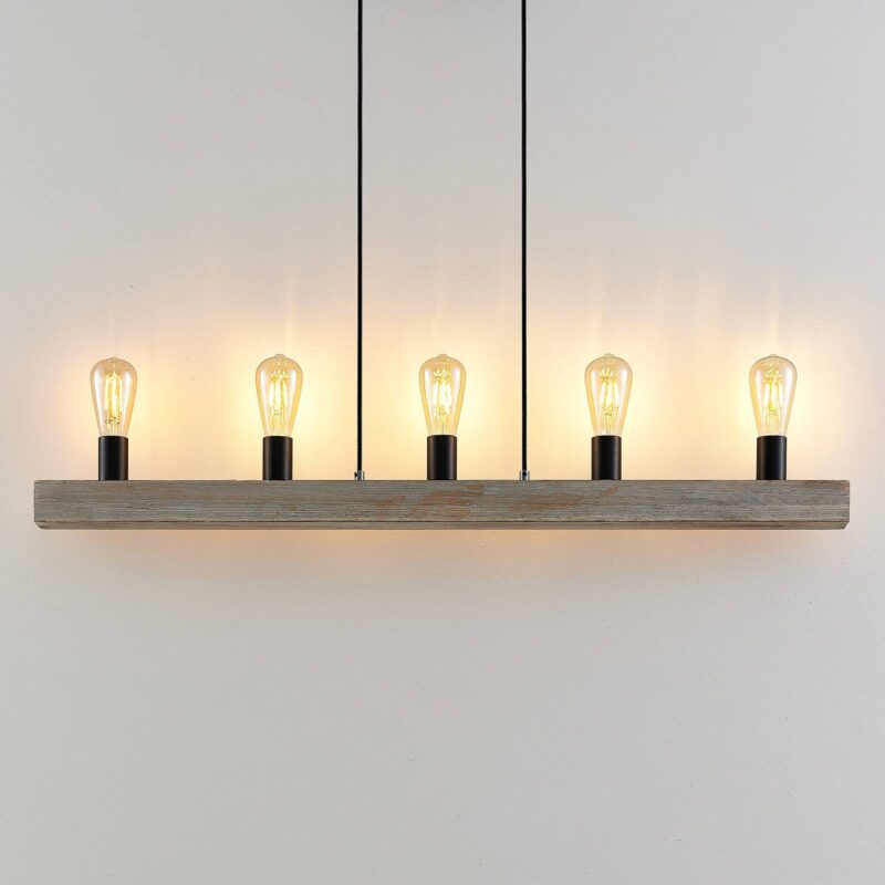 Lindby Relia závesná lampa, s drevenými nosníkmi