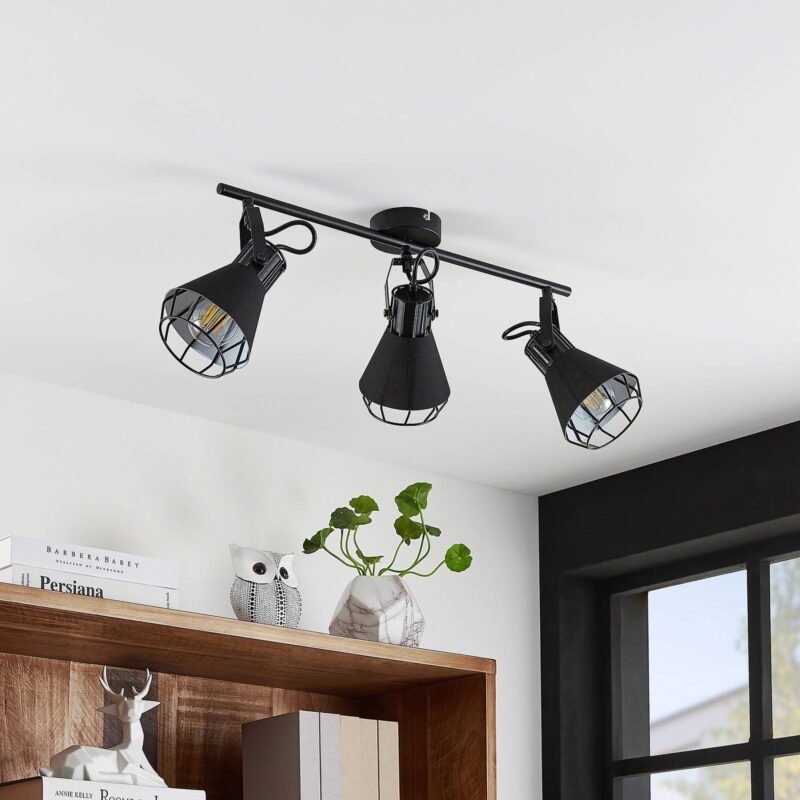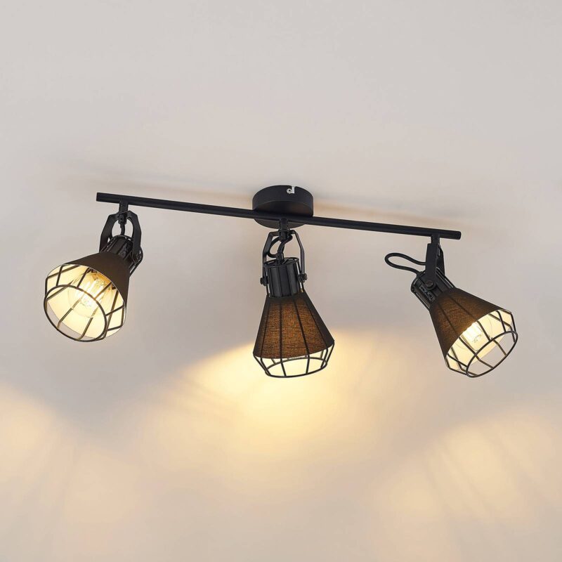 Čierna škvrna Yusei vyrobená zo železa a látky v predĺženom tvare Yusei je stropne bodove svetla s tromi plameňmi, ktoré je ideálne pre obývaciu izbu alebo chodbu. Je vyrobený zo železa a jeho tienidlá sú potiahnuté látkou. Na jeho kompaktnej stropnej konzole je vodorovne pripevnená podlhovastá vzpera, ku ktorej sú postupne pripevnené vyššie uvedené dáždniky. Pretože je svetelný zdroj jasný, na zdôraznenie špeciálneho vzhľadu žiarovky sa v tienidle odporúča použiť žiarovku. Žehlička a čierna farba dodávajú Spot Yusei robustný, ale elegantný charakter, ktorý na stropoch bytov dáva pútavé akcenty.