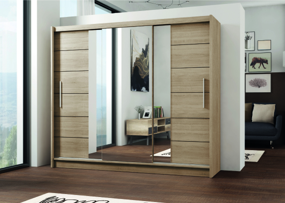 Trojdverová šatníková skriňa LISBONE je výbornou samostatnou voľbou do Vašej spálne. Poskytne Vám skutočne veľký úložný priestor pre Vaše veci.Korpus skrine a dvierka sú vedené vo farebnom prevedení dub sonoma. Na stredových posuvných dverách je vstavané vertikálne veľké zrkadlo. Všetky 3 dvierka sú posuvné a sú postavené na veľmi kvalitných hliníkových koľajničkách.Vnútro skrine je tvorené jednou vešiakovou tyčou a postrannými policami. Úchyty sú z kovu.Skriňa je vyrobená z laminovanej drevotriesky s hrúbkou 16mm. Dostupná v inom farebnom prevedení: biela.Rozmery:- výška: 215 cm- šírka: 250 cm- hĺbka: 61 cmDodávame v demonte.Záruka: 24 mesiacov.