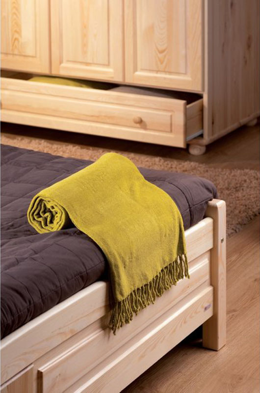 LK115 Posteľ v šírke 120 cm. Jednoduchá posteľ z masívneho borovicového dreva. Farebné prevedenie: prírodná borovica (Dr-borovica). Za príplatok ponúkame možnosť namorenia na odtieň dub (Dr-dub), jelša (Dr-olcha) alebo orech (Dr-orech). Túto peknú masívnu posteľ ponúkame v štyroch šírkach: 120, 140, 160 a 180 cm. Cena je iba za posteľ – bez matraca a roštu. V našej ponuke nájdete tiež vhodné rošty aj matrace. Drevo je špeciálne upravené lakovaním na ochranu pred poškodením a zaručuje dlhú životnosť nábytku.