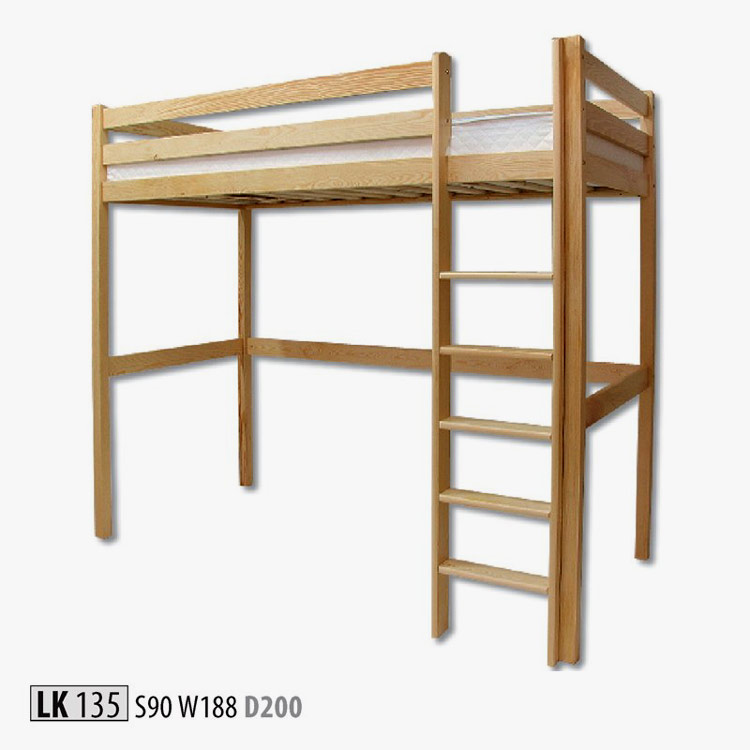 LK135 Poschodová posteľ je v šírke 90 cm. Pod poschodovú posteľ si môžete dať pc stôl alebo skrine. Je vhodná hlavne do menších priestorov, kde sú potrebné praktické riešenia nábytku. Posteľ je vyrobená z masívneho borovicového dreva. Farebné prevedenie: prírodná borovica. Za príplatok vám ponúkame možnosť namorenia na odtieň jelša, orech a dub. Rošt a matrac nie je v cene postele. Je možné ich u nás doobjednať. Dodávame v demontovanom stave.