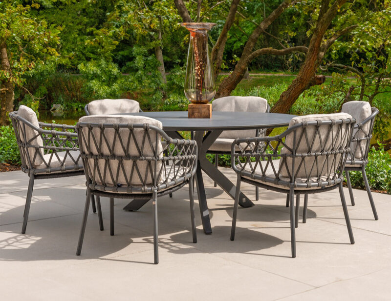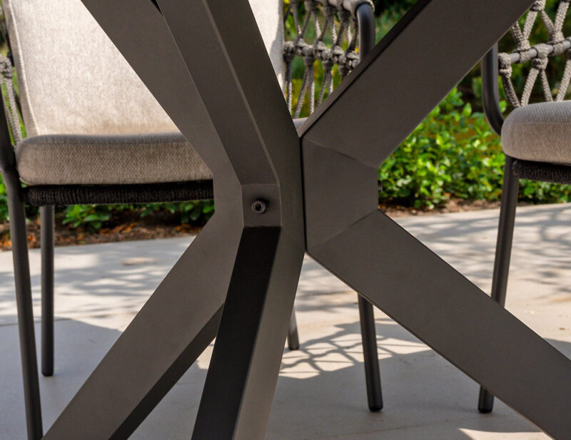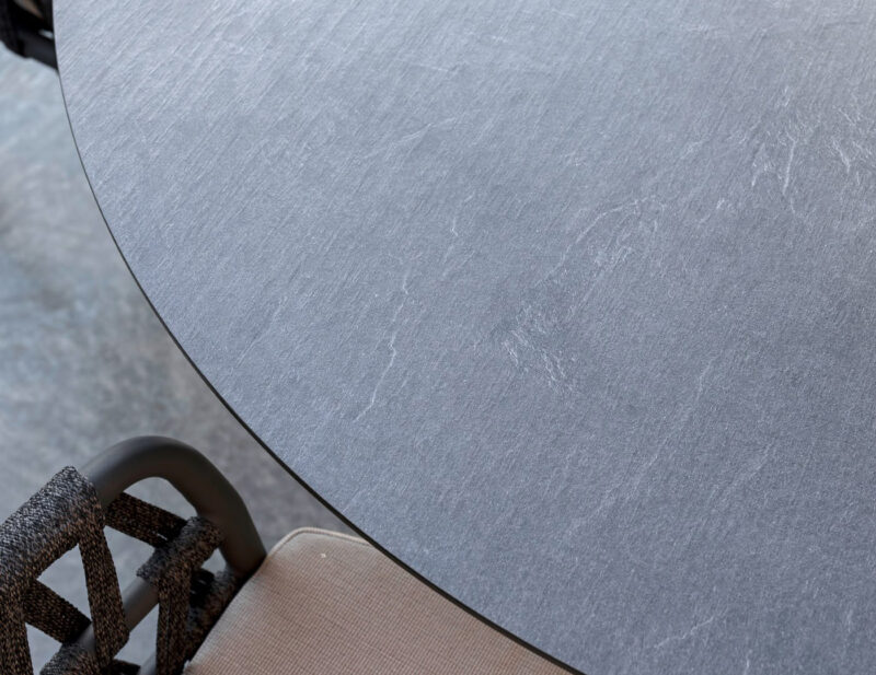 Locarno jedálenský stôl kombinuje moderný dizajn, pevnú hliníkovú konštrukciu a odolnú HPL dosku. Okrúhly tvar ponúka dostatok priestoru pre pohodlné stolovanie a vďaka kvalitným materiálom je ideálny do exteriéru.