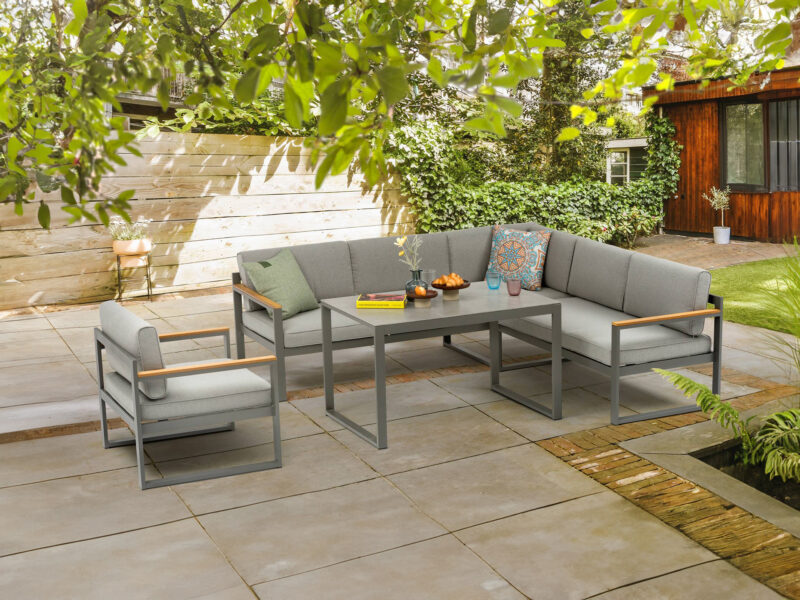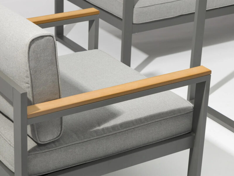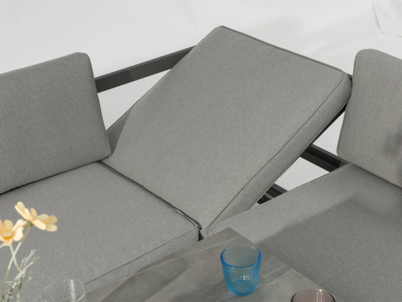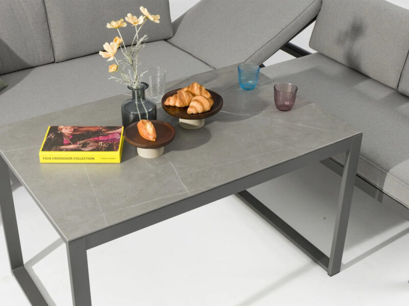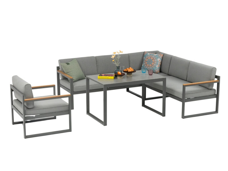 Lolland premení vašu terasu na útulné miesto pre relax a stolovanie. Sklápacia rohová lavica ponúka variabilitu, zatiaľ čo elegantný stôl so sinterstone doskou pridáva moderný vzhľad. Pohodlné kreslo dopĺňa celok, aby ste si mohli užiť príjemné chvíle vonku.