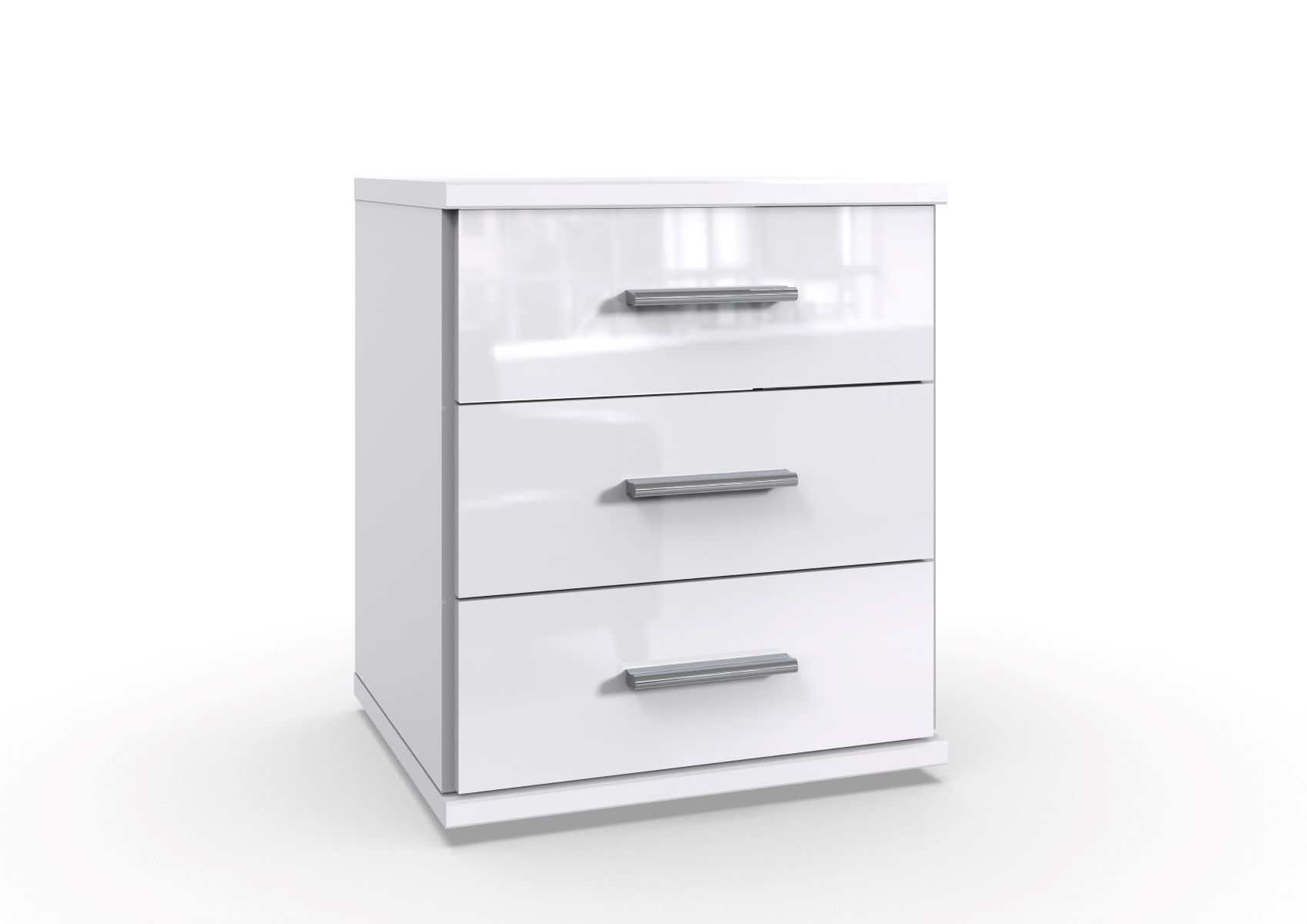 Elegantný nočný stolík so zásuvkami LORIANA doplní každý štýlový a moderný interiér. Korpus je v nadčasovej bielej farbe, dvierka sú lakované vo vysokom lesku, čo ešte viac podčiarkuje jeho eleganciu. Či už ho využijete ako nočný stolík alebo ako komodu do spálne, bude určite ozdobou každého priestoru. Je vyrobený z kvalitenej LTD dosky, ktorá je nenáročná na udržiavanie. Rukoväte sú plastové v lesklej chrómovej farbe. Rozmery (ŠxVxH): 46 x 58 x 40 cm.Možno ho umiestniť samostatne, alebo aj ako doplnok k jedinečnej rohovej šatníkovej zostave, ktorá Vám poskytne maximálne využitie priestoru a súčasne pôsobí veľmi štýlovo.Dodávame v demonte.