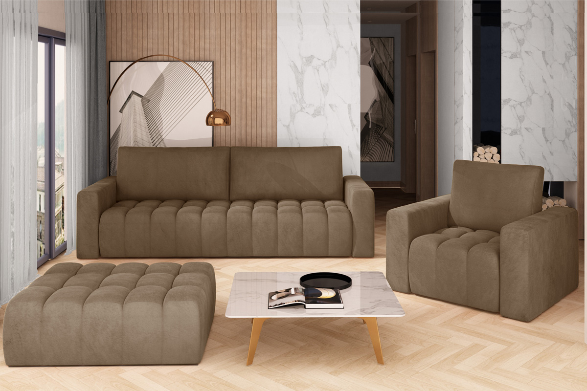 Sedacia súprava LOSIKA vás zaujme svojou eleganciou a štýlovým prevedením. Táto moderná zostava sa skladá z troch atraktívnych prvkov, ktorými sú: pohovka, kreslo a taburetka. Pohovka je vyplnená kvalitnou HR penou v kombinácii s PUR penou o hustote T2540. Disponuje praktickým úložným priestorom. Je tiež rozkladacia. Spacia plocha: 195 x 125 cm. Je vhodná na príležitostné spanie.Rozmery pohovky (š,v,h): 245 x 85 x 97 cm. Výška sedadla: 40 cm. Výška nožičiek: 3 cm. Kreslo je vyplnené vlnovcovou pružinou v kombinácii s HR a PUR penou o hustote T2130. Rozmery kresla (š,v,h): 108 x 85 x 89 cm. Výška sedadla: 40 cm. Výška nožičiek: 3 cm. Taburetka je vyplnená tiež vlnovcovou pružinou v kombinácii s HR a PUR penou o hustote T2130. Rozmery taburetky (š,v,h): 102 x 40 x 64 cm. Výška nožičiek: 3 cm. Sedacia zostava LOSIKA je čalúnená kvalitnou poťahovou látkou Monolith 09.V našej ponuke nájdete aj ďalšie farebné prevedenia zostavy LOSIKA. Sedaciu zostavu máme v ponuke len ako celok.