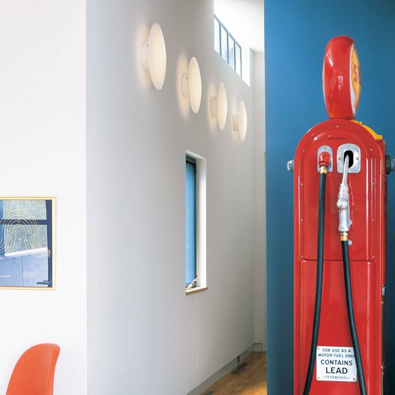 Sklenené nástenné svietidlo AJ Eklipta pre interiéry a exteriéry Toto harmonicky navrhnuté nástenné svietidlo pozostáva z troch vrstiev opálového skla, ktoré boli ručne fúkané. Vyznačuje sa čírym okrajom, ktorý vedie svetlo ako svetelnú korónu okolo svietidla, ak je zapnuté. Ak je svietidlo AJ Eklipta inštalované ako nástenné svietidlo, môže sa vďaka ochrannej triede IP44 používať tak v interiéri, ako aj v exteriéri. Môže sa používať aj vo vnútorných priestoroch ako stropné svietidlo (IP20). Architekt Arne Jacobsen navrhol nástenné svietidlo AJ Eklipta v roku 1959 pre radnicu v Rødovre – jednoduchá krása, ktorá sa hodí do mnohých štýlov interiérového zariadenia a zaručí harmonické osvetlenie okolia. Jacobsen sa pri svojich architektonických návrhoch vždy staral o detaily tak, ako napr. u príborov, tapiet, lámp atď. Výrobca Louis Poulsen uplatňuje škandinávsku zásadu „Tvar sleduje funkčnosť“, ktorá sa zameriava na vytvorenie svietidiel, ktoré plnia ľudskú potrebu po svetle osobitným spôsobom a ktoré vyzerajú atraktívne, aj keď sú vypnuté.