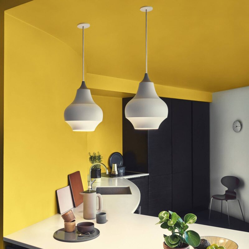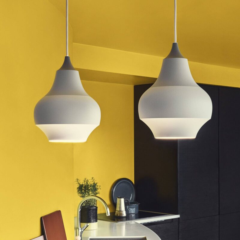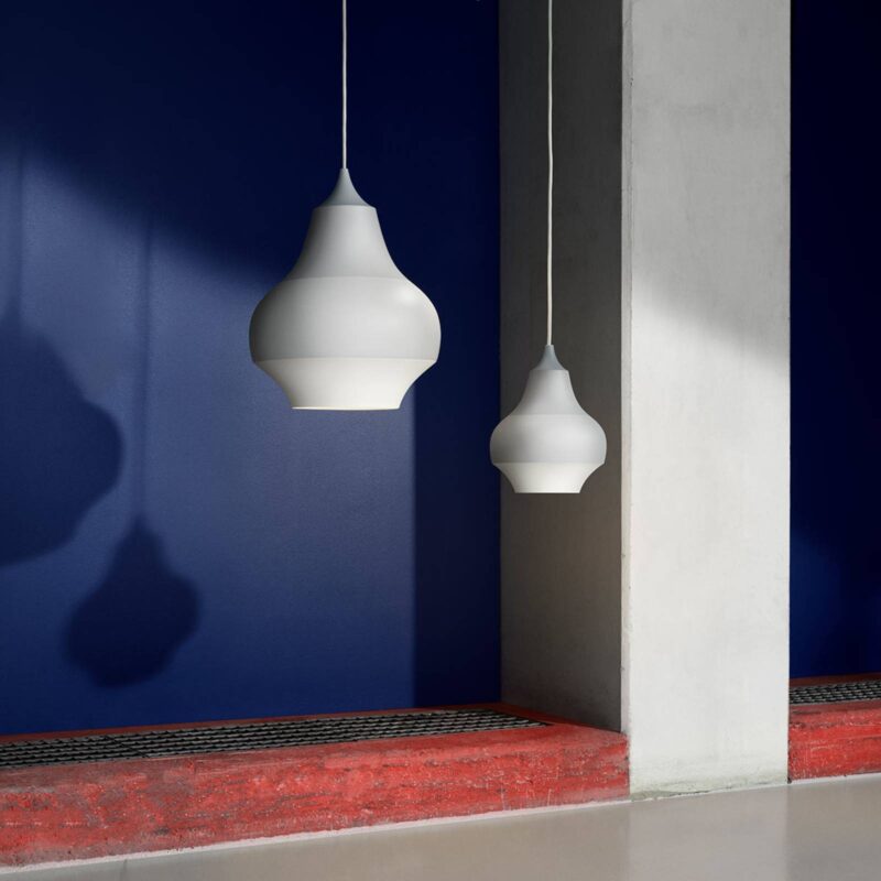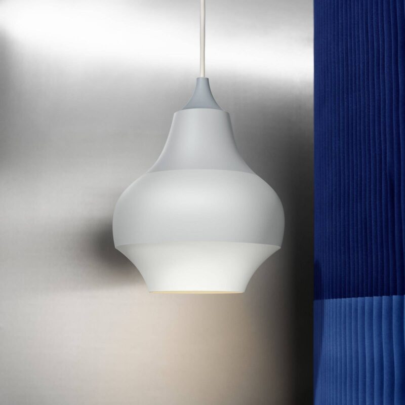 Cirque: dizajnérska závesná lampa so vzorom sivo-bielych pruhov v bloku Cibuľovité tienidlo na závesnú lampu Cirque nalakované v rôznych odtieňoch sivej je vyrobené z ťahaného hliníka, pričom tvar lampy vychádza zo vzhľadu cibuľových kvetov v záhrade Tivoli v Kodani. Tento zdroj inšpirácie nie je prekvapením, keď si spomeniete, že pre výrobcu Louis Poulsen navrhuje svietidlá dizajnérka Clara von Zweigbergková, a že inštruktáž pre túto sériu svietidiel sa toho času uskutočnila v Tivoli – slávnom zábavnom parku v srdci Kodane. Vnútorná strana tienidla na lampu je nalakovaná bielou farbou, čím sa zabezpečí optimálny odraz svetla, ktoré je nasmerované nadol, a okrem toho je neoslňujúce. Po ukončení svojho štúdia grafického dizajnu pracovala štokholmská dizajnérka Clara von Zweigbergková pre reklamné agentúry a dizajnérske štúdiá v Štokholme, Los Angeles a Miláne. Teraz vlastní vlastné štúdio. Bola jej tiež udelená cena Wallpaper Design Award a cena Swedish Design Award.