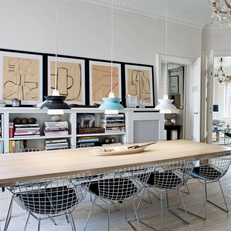 Závesná lampa Doo-Wop s atraktívnym dvojitým tienidlom na lampu Závesná lampa Doo-Wop je dizajnérskou klasikou 50. rokov dvadsiateho storočia, ktorá bola vtedy navrhnutá na základe spolupráce firmy Louis Poulsen a Dánskej správy námorníckych budov a používala sa najmä v kantínach a kanceláriách. Aj preto dostala meno námornícka závesná lampa. Jej mimoriadne svetelné vlastnosti so svetlom nasmerovaným tak nahor, ako aj nadol a neoslňujúcim vyžarovaním z nej urobili mimoriadne populárne svietidlo, ktoré spoločnosť Louis Poulsen naďalej predávala až do 80. rokov minulého storočia. Vnútorné, kužeľovité tienidlo na lampu vyžaruje svetlo priamo nadol, zatiaľ čo vonkajšie tienidlo na lampu vydáva svetlo nahor a nadol, aby sa tak vytvorila jemná svetelná atmosféra. Rovnako ako na začiatku svojho úspešného príbehu, aj dnes sú ešte tienidlá na lampu pre Doo-Wop ťahané ručne a vybavené jemne valcovaným okrajom, ktorý tienidlám na lampy prepožičiava špeciálny objem. Niet pochýb o tom, že nová verzia lampy Doo-Wop v mosadznej farbe (2012), ako aj farbe medi a nehrdzavejúcej ocele (2017) vytvorí rovnako trvalý dojem.