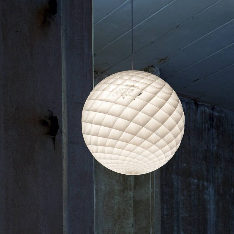 Dizajnérska závesná lampa Patera s organickým vzhľadom – Ø 45 cm Tvorcom tejto jedinečnej závesnej lampy, ktorej tienidlo na lampu guľovitého tvaru je zložené z nespočetných, drobných kosoštvorcových buniek, sa nazýva Øivind Slaatto. Dánsky dizajnér sa necháva viesť svojou prirodzenou citlivosťou na svetlo a inšpiruje sa prírodou. Zaujíma sa najmä o Fibonacciho postupnosť, ktorú možno vidieť napríklad u slnečníc. Fibonacciho postupnosť opisuje prirodzený sled čísel, v ktorom sú prvé dve čísla jednotkou a nasledujúce čísla sú vždy súčtom oboch predchádzajúcich čísel. V prípade rastlín sa Fibonacciho postupnosť často prejavuje v usporiadaní ich listov. Často sa vyznačujú špirálami listov, ktoré sú zoskupené okolo stonky, a takto dopadajúce svetlo dosiahne najlepší svetelný účinok. Sledovaným tohto princípu bola u závesnej lampy Patera každá bunka navrhnutá tak, aby zachytila svetlo a žiarovka ho tienila pod zorným uhlom viac ako 45°. Každá jednotlivá bunka je osvetlená. Pri uhle menej ako 45° sú bunky otvorené a vedú svetlo smerom nadol. Malá časť svetla je tiež nasmerovaná nahor a žiari proti stropu. Toto svietidlo sa dokonale prispôsobilo filozofii výrobcu Louis Poulsen, podľa ktorej výrobky získajú určitý tvar nie samoúčelne, ale skôr aby svetlu, ktoré vytvárajú, prepožičali tvar.