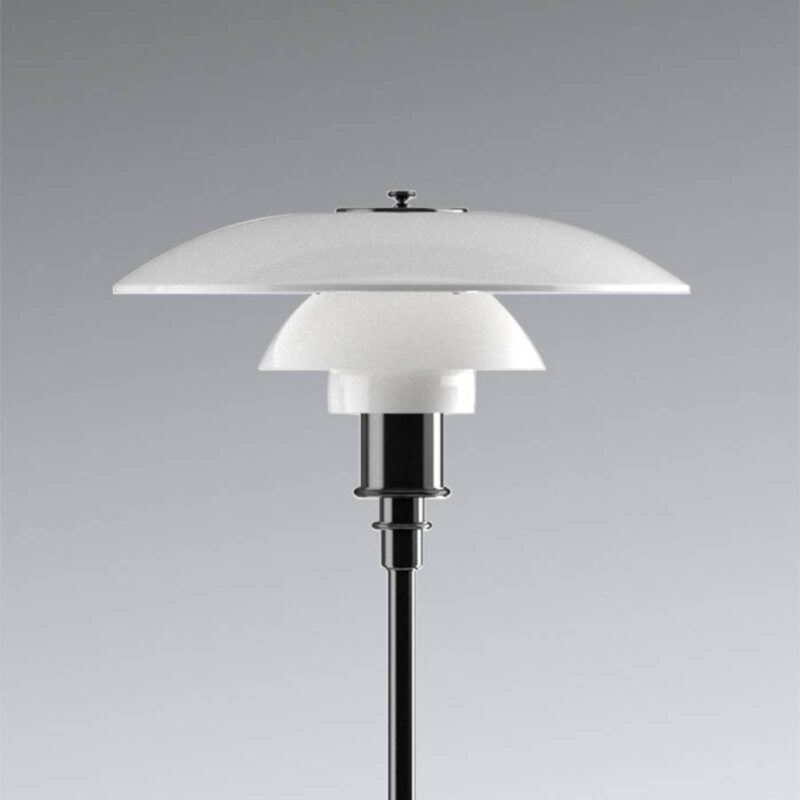 Stojaca lampa PH 3 1/2 – 2 1/2 – dizajnérsky kúsok s fantastickým svetelným efektom Štýlovo navrhnutá stojaca lampa PH 3 1/2 – 2 1/2 je súčasťou série svietidiel vytvorenej dánskym dizajnérom Poulom Henningsenom s reflexným systémom trojitého tienidla na lampu, ktorú začal s návrhom tohto špeciálneho systému tienidiel v rokoch 1925/26 a v priebehu rokov hu rozšíril o 19 modelov s cca 1 000 variáciami. Trojdielne tienidlo na lampu smeruje väčšinu vyžarovaného svetla nadol. Tieto tri prvky tienidla na lampu sú vyrobené z vysokokvalitného, trojvrstvového, ručne fúkaného opálového skla. Sklo má lesklú vonkajšiu stranu, zatiaľ čo vnútorná strana je matná v dôsledku pieskovania a vyžarovanému svetlu prepožičiava jemný efekt. Mosadzný rám má elegantnú povrchovú úpravu, takže celkový dojem pôsobí nadčasovo. Poul Henningsen desaťročia spolupracoval (od 1925 až do svojej smrti v 1967) s výrobcom svietidiel Louis Poulsen, pričom ich spoločným cieľom bolo prepožičať svetlu tvar a vytvoriť svietidlá, ktoré ohromia zmysly, či už sú zapnuté, alebo vypnuté.
