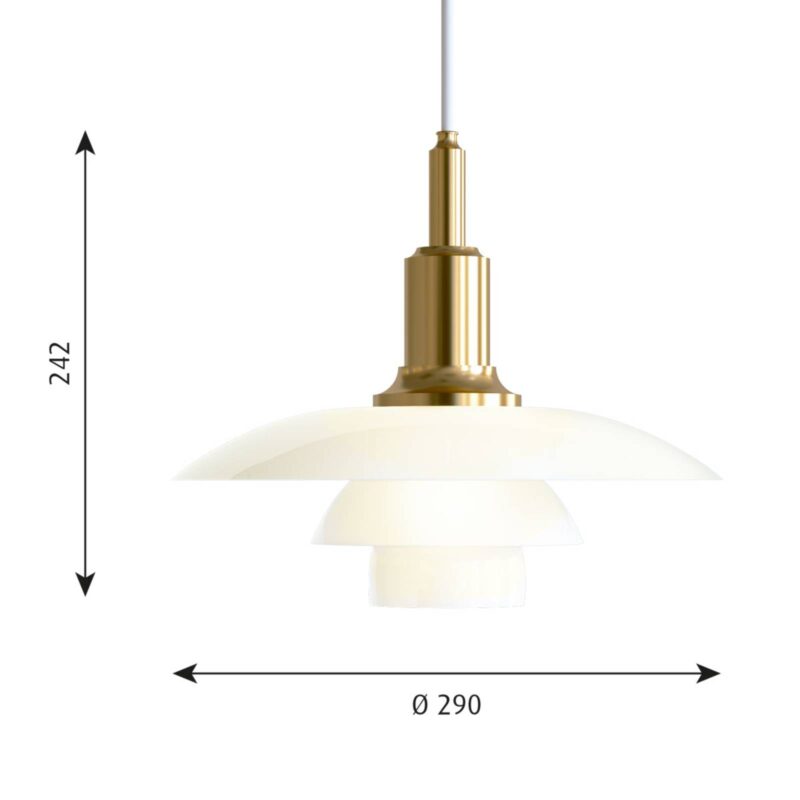 Louis Poulsen PH 3/2 sklenená lampa mosadz biela