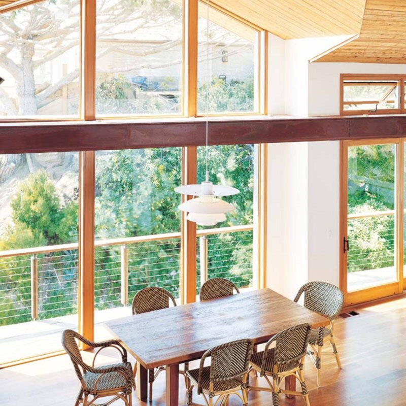 Dizajnérska závesná lampa PH 5-4 1/2 s úplne grandióznym svetelným efektom Závesná lampa PH 5-4 1/2 je vybavená štvordielnym tienidlom na lampu, ktorého komponenty boli všetky vyrobené z ťahaného hliníka. Tri tienidlá na lampu vedú svetlo primárne smerom nadol, zatiaľ čo horný diel tienidla na lampu v tvare trúbky sa postará o osvetlenie smerom nahor a do strán. Svietidlo je na všetkých stranách chránené proti oslneniu prostredníctvom tvaru základne, ako aj kruhu proti oslňovaniu. Dánsky dizajnér Poul Henningsen sa vo svojej celoživotnej tvorbe zameral na navrhovanie svetiel s neoslňujúcim vyžarovaním svetla. Po vytvorení trojitého systému tienidla na lampu v rokoch 1925/26, v roku 1931 vytvoril svoje prvé svetlo so štvordielnym tienidlom na lampu, aby sa vyžarovanie svetla zlepšilo do všetkých strán. V 40. rokoch dvadsiateho storočia tento model zmizol zo sortimentu výrobcu svietidiel Louis Poulsen, s ktorým Henningsen spolupracoval od roku 1925 až do jeho smrti v roku 1967. Potom, ako už v roku 1979 architekti Sophus Frandsen a Ebbe Christensen navrhli veľký model (PH 61/2-6) pre výstavisko Charlottenborg v Kodani, bol v roku 1984 vytvorený menší model – PH 5-4 1/2 – pre koncertnú budovu Århus Musikhus. Aby vyriešili problém s oslňovaním, pridali k nemu malý, modrý prvok tienidla na lampu. Výsledkom bola fantastická závesná lampa PH 5-4 1/2.