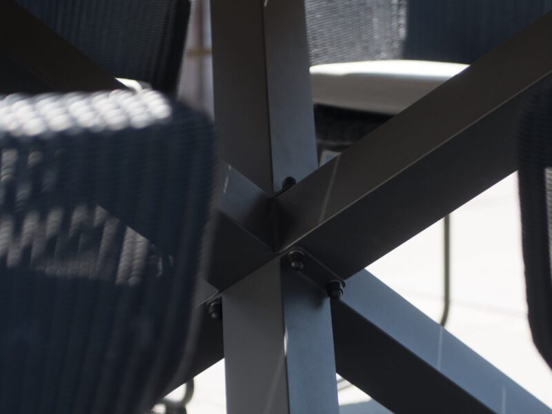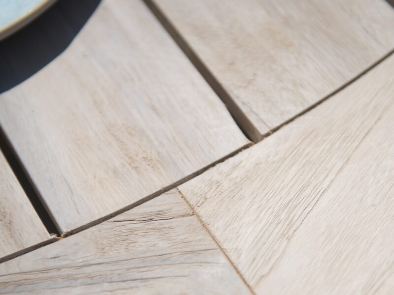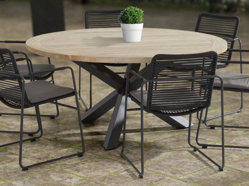 Štýlový jedálenský stôl Louvre z teakového dreva vo farebnom prepojení prírodnej hnedej a antracitovej farby.