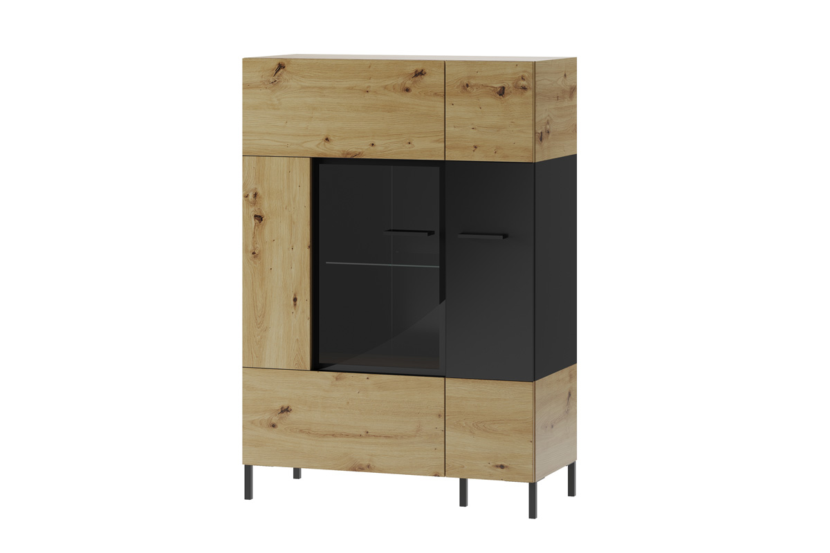 LOVENA 15 presklená vitrína, dub artisan/čierna