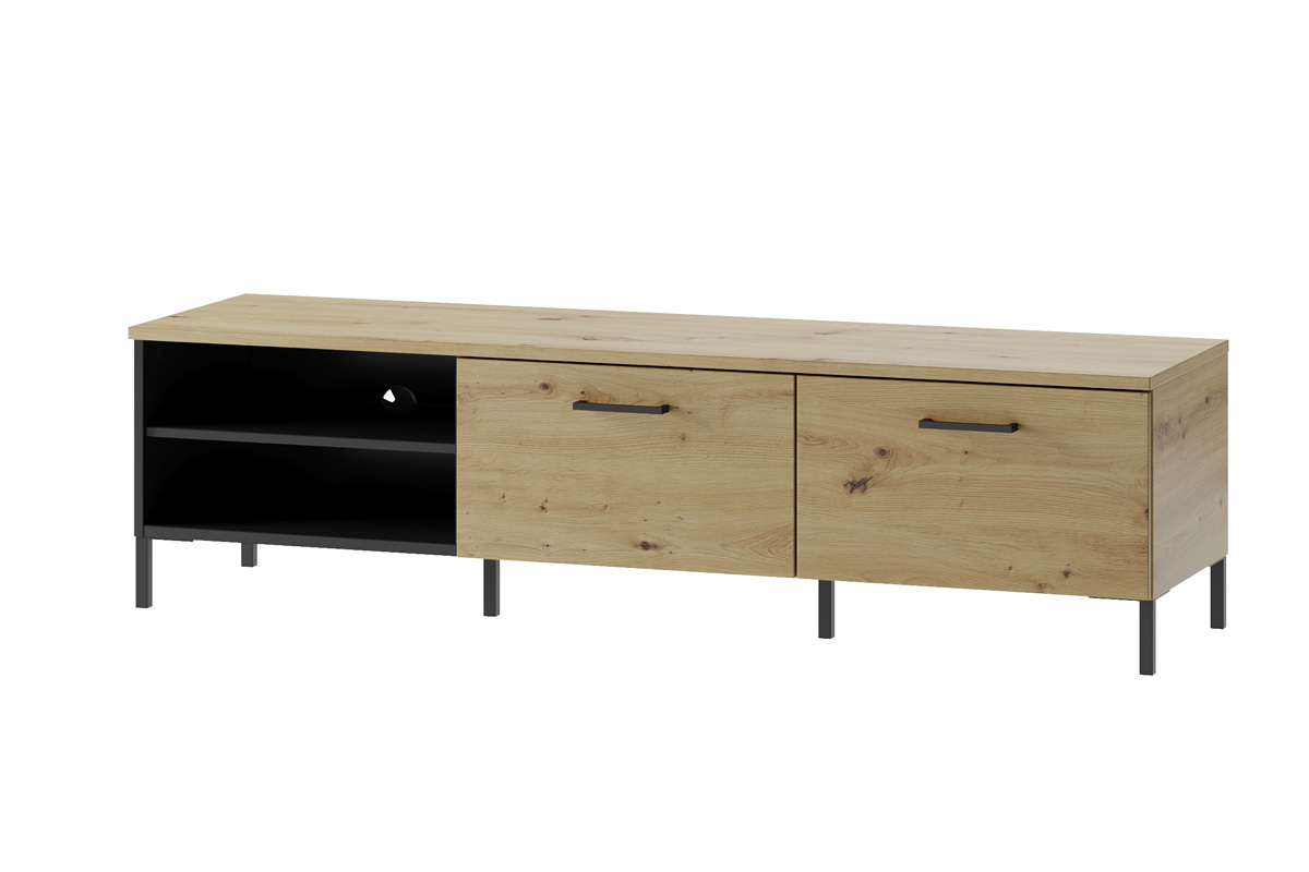 Televízny stolík LOVENA je v atraktívnom a štýlovom prevedení. Zaujme aj náročnejších zákazníkov.Je vyrobený z kvalitných LTD dosiek, ktoré sú nenáročné na údržbu. Štýlové úchyty sú v tmavom prevedení. Vyrobené sú z plastu. Moderné nožičky sú vyrobené z kovu. Jeho farebné prevedenie je v spojení farieb dub artisan, čierna matná.TV stolík disponuje dvomi vyklápacími dierkami s úložnými priestormi. Tiež má dve otvorené poličky na dvd prehrávač, wifi router a podobne.Rozmery (š,v,h): 155 x 42 x 42 cm.V našej ponuke sú aj ďalšie prvky LOVENA, vďaka ktorým si vyberiete a poskladáte obývačku či jedáleň podľa vašich predstáv.Dodávame v demontovanom stave.