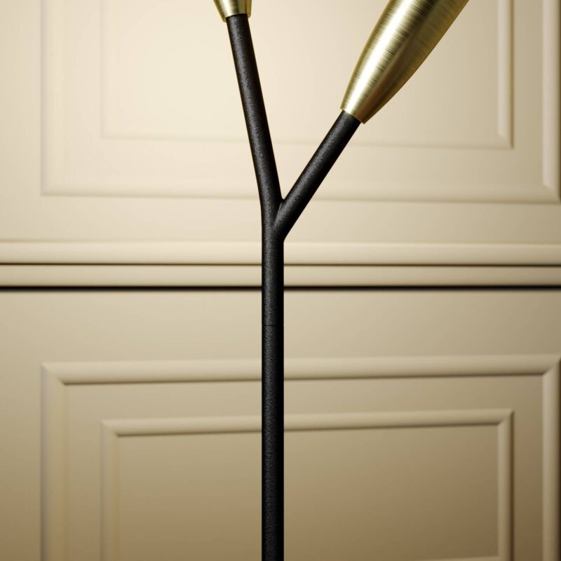 Stolová lampa Carlea s dvoma svetlami s medenými detailami Carlea je stolová lampa s moderným dizajnom a výnimočne štýlovým vzhľadom. Vzhľadom trochu pripomína konáre, i keď v modernej abstrakcii. Podstavec lampy a teleso sú čierne, zatiaľ čo obidva prvky majú na objímkach elegantný medený odtieň a vyvolávajú pôsobivý farebný kontrast. Keďže nemajú žiadne tienidlá ani nič podobné, je žiarovky E27 je veľmi dobre vidieť. Preto by sa mali vyberať s mimoriadnou starostlivosťou, aby sa hodili k celkovému dizajnu Vláknové alebo rustikálne žiarovky LED sú na tento účel vždy vhodnou voľbou, pretože ich žiarovka vyzerá dobre.