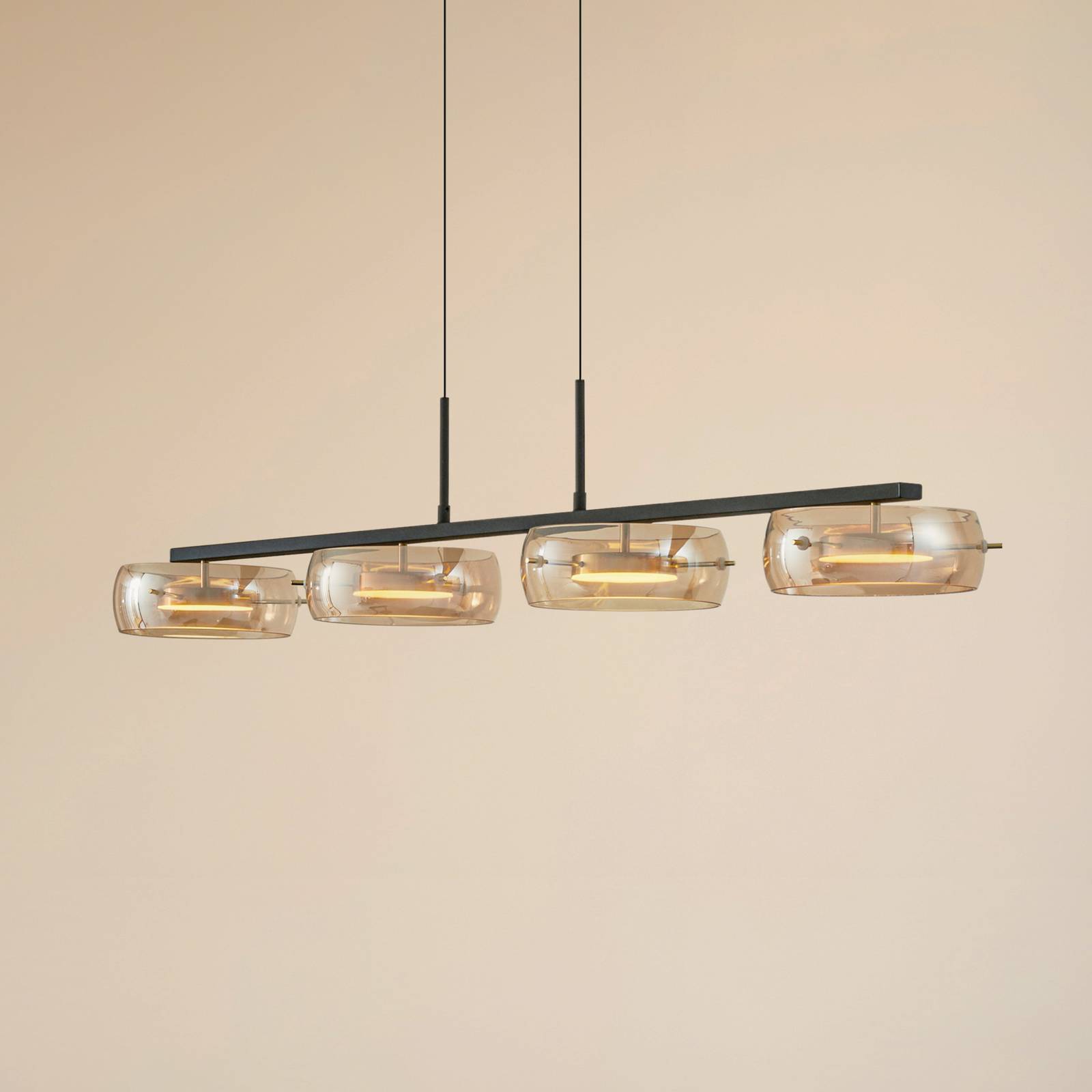 Lucande LED závesné svietidlo Martis, jantárové, 4-pl., stmievateľné