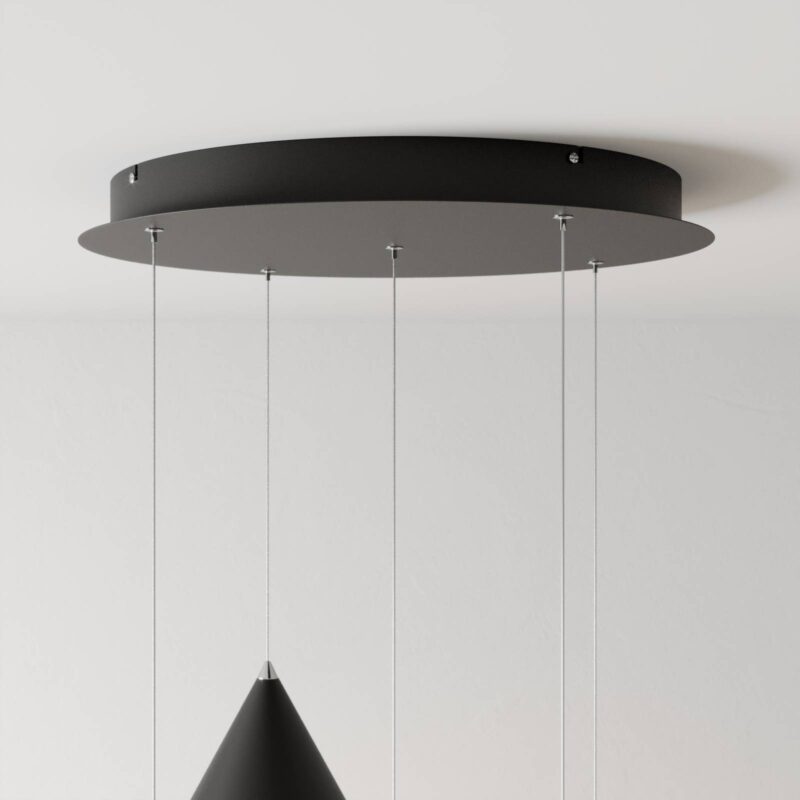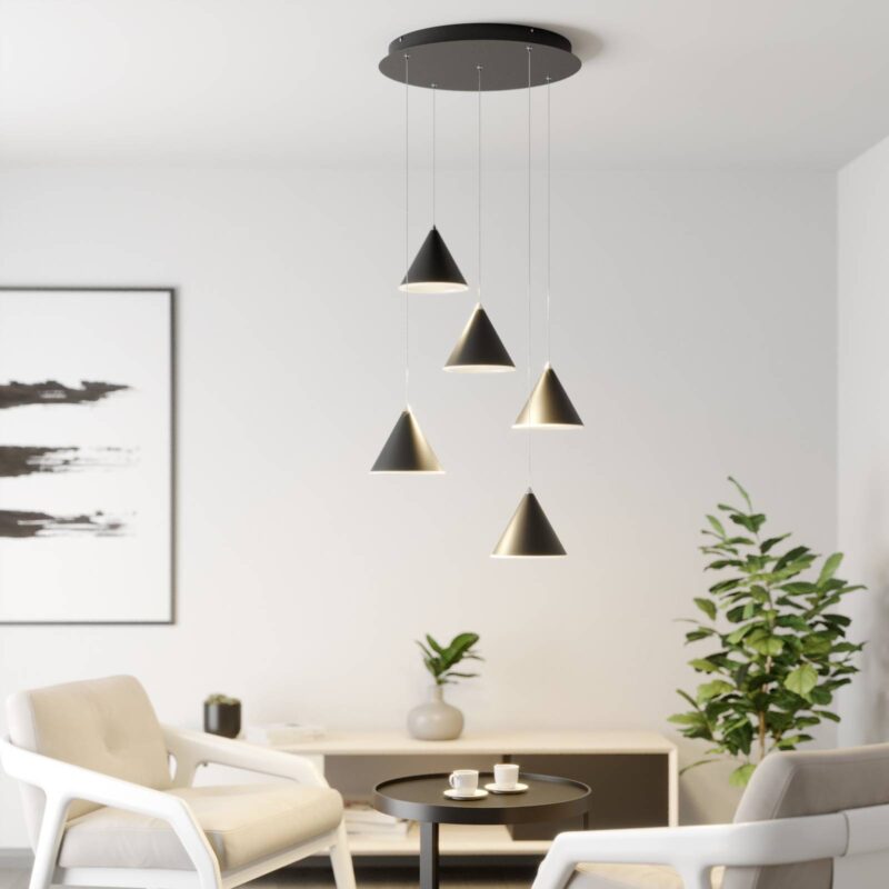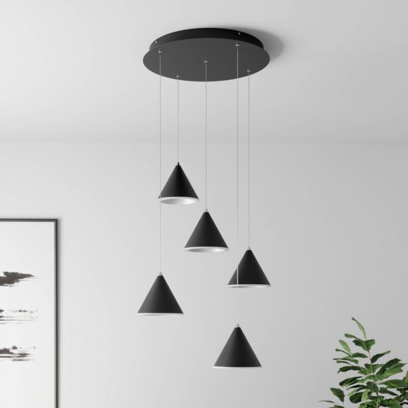 Dekoratívne závesné LED svietidlo Livan, stmievateľné Závesné LED svietidlo Livan nie je len doplnkovým zdrojom svetla, ale aj pekným dekoračným prvkom. Jeho päť individuálne zavesených tienidiel na lampu poskytuje vďaka ich valcovému tvaru moderný a nadčasový nádych. Tienidlá na lampu sa môžu namontovať v rôznych výškach, čím svietidlu dodávajú osobitý vzhľad. Tienidlá na lampu sú lakované v elegantnej, matnej čiernej farbe, a tým dotvárajú dizajn. Keďže diódy LED vyžarujú teplé biele svetlo, ktoré mnohí považujú za príjemné a útulné, je svietidlo Livan ideálne na inštaláciu v obývačke. Svetlo sa dá stmievať a tak sa optimálne prispôsobí požadovanej intenzite osvetlenia.