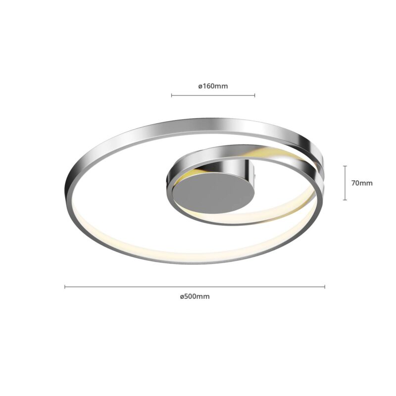 Stmievateľné nástenným vypínačom – stropné LED svietidlo Maire Moderná konštrukcia sa prispôsobuje stropu miestnosti vo veľmi modernom a elegantne lesklom chróme. Stropné LED svietidlo Maire nie je obyčajné svietidlo, žiari elegantnou prepracovanosťou a jednoduchou technológiou. Jas integrovaných diód LED, ktoré osvetľujú miestnosť teplým bielym svetlom, sa dá ľahko meniť bežným nástenným vypínačom. Proces stmievania sa uskutočňuje postupne od 100 % jasu po slabo svietiacich 15 %. Ideálne pre obývačku, jedáleň alebo chodbu, stropné LED svietidlo Maire vytvára dobré základné osvetlenie.