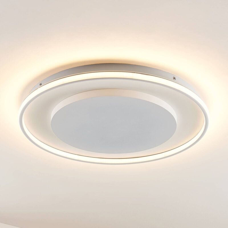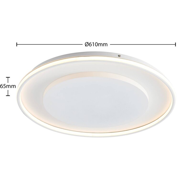 Veľké stropné LED svietidlo Murna v okrúhlom tvare, trojstupňové prepínanie pomocou vypínača Veľké stropné LED svietidlo Murna s priemerom viac ako 60 cm je vynikajúce na základné osvetlenie veľkých miestností a ponúka flexibilitu z hľadiska osvetlenia, a to bez dodatočnej inštalácie stmievača. Teplé biele LED diódy v svietidle možno nielen zapínať a vypínať pomocou existujúceho vypínača, ale aj prepínať na tri úrovne jasu, takže osvetlenie možno flexibilne regulovať. Môže svietiť so 100 % jasom alebo sa dá prepnúť na dve úrovne stlmenia (40 % a 10 %), napríklad na zabezpečenie príjemného osvetlenia na večerné relaxovanie alebo pohodlné spoločné posedenie. 3-stupňové stlmenie: Nástenný vypínač umožňuje zapínať a vypínať svietidlo ako zvyčajne. Vďaka technológii 3-stupňového stmievania s integrovanou funkciou vypnutia ho možno stlmiť aj na tri rôzne úrovne jasu niekoľkonásobným stlačením spínača: 100 %, 40 % a 10 %.