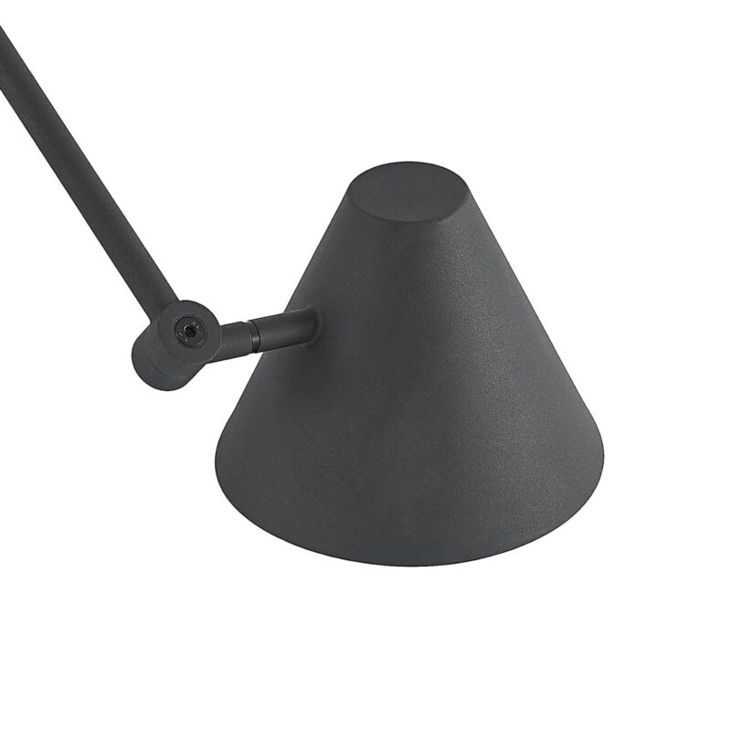 Stropné svietidlo Phina s dvoma lampami v štíhlom dizajne z ocele Phina je praktické stropné svietidlo s moderným charakterom. Je umiestnený na kompaktnom okrúhlom stropnom držiaku, z ktorého vychádzajú dve štíhle ramená, z ktorých každé má dva pohyblivé kĺby a je zakončené štýlovým tienidlom. Svietidlo je celé z čiernej ocele, zatiaľ čo vnútorná časť tienidiel je v harmonickej bielej farbe. Moderný dizajn sa hodí najmä do obývacej izby alebo jedálne a na plochých stropoch vytvára nenápadné akcenty. Stropné svietidlo Phina možno osadiť žiarovkami E27 a kĺbové ramená poskytujú flexibilné osvetlenie.