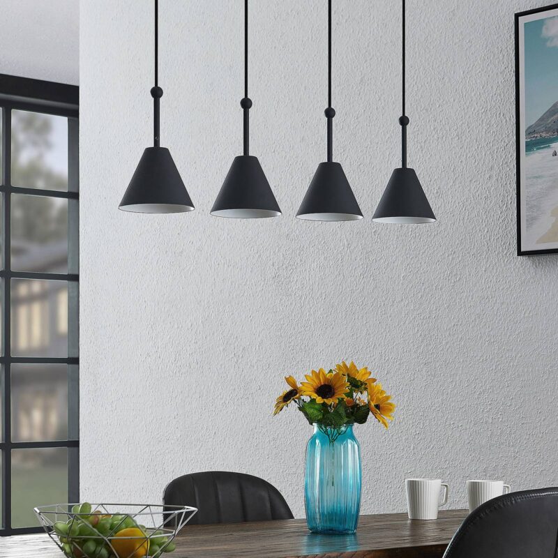 Lucande Phina závesná lampa v čiernej, 4-pl.