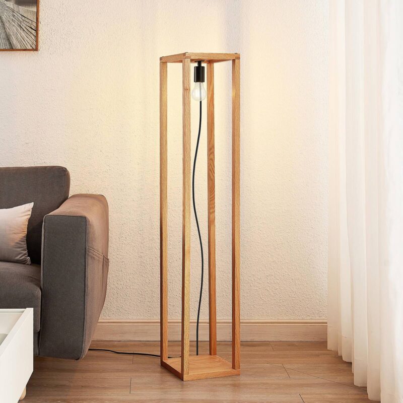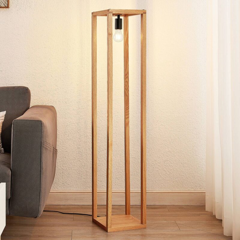 Stojatá stojaca lampa v tvare rámu Sedrik v drevenom vzhľade Sedrik je pomerne neobvyklá stojaca lampa, ktorú je ťažké porovnávať s klasickým stereotypom. Nie je tu rám a tienidlo na lampu, ale skôr rám s dreveným vzhľadom, ktorý je navrhnutý úplne lineárne a vytvára stojaca lampa, cez ktorú vidíte takmer úplne. Svetelný zdroj je tiež súčasnou súčasťou celkového vzhľadu a pokiaľ je to možné, mal by sa zvoliť taký, aby sa zhodoval. Tip je celkom jasný: žiarovky a žiarovky osvetlené žiarovkou, ktoré sú prevádzkované pomocou technológie LED, sú obzvlášť účinné a nechýba im kúzlo klasickej žiarovky.