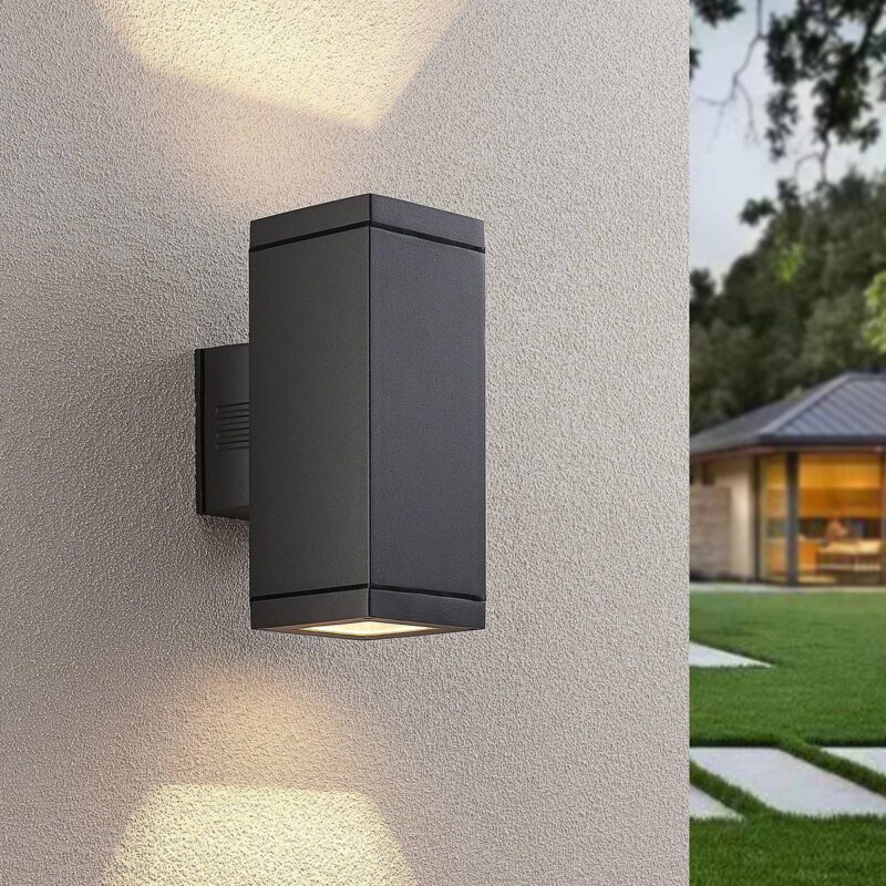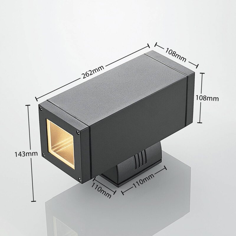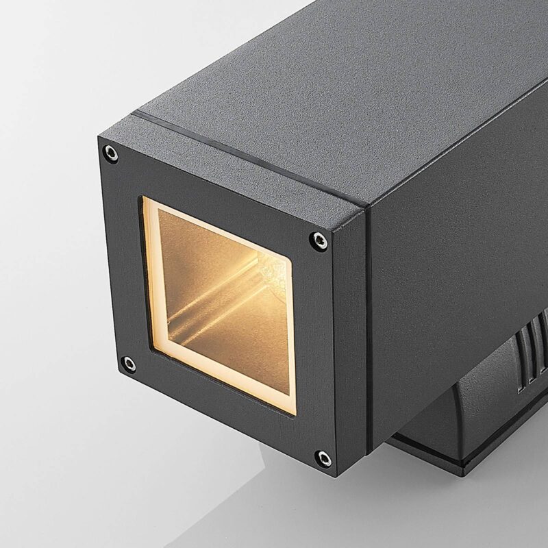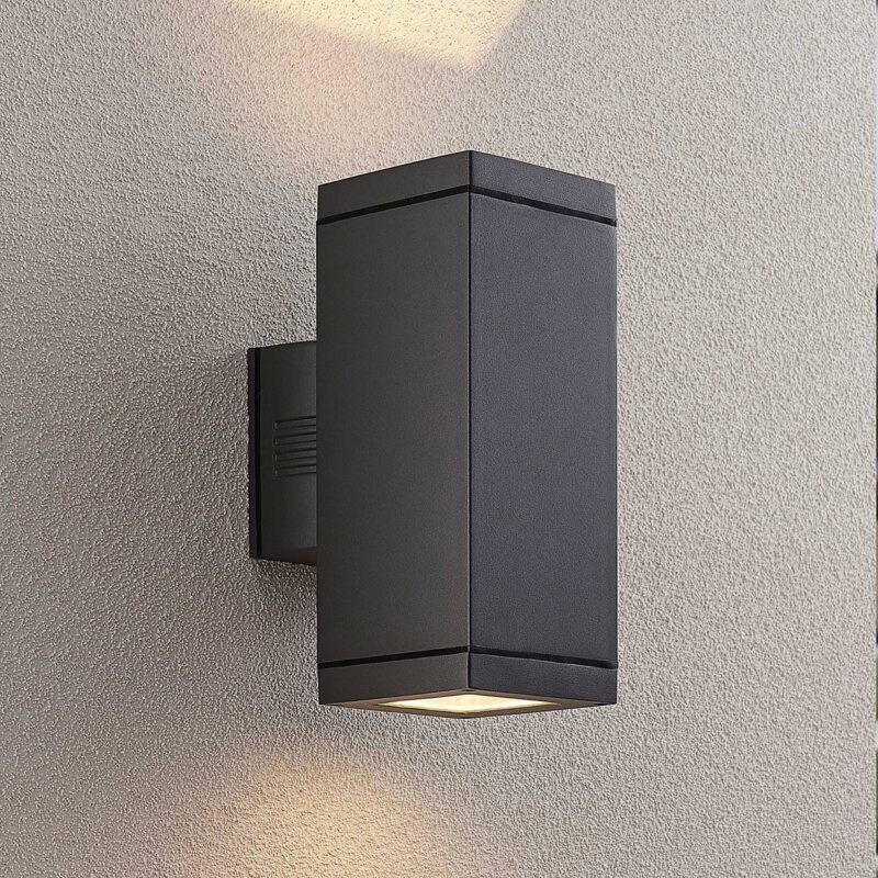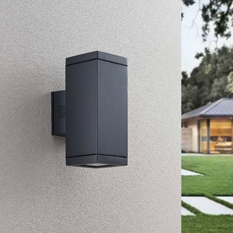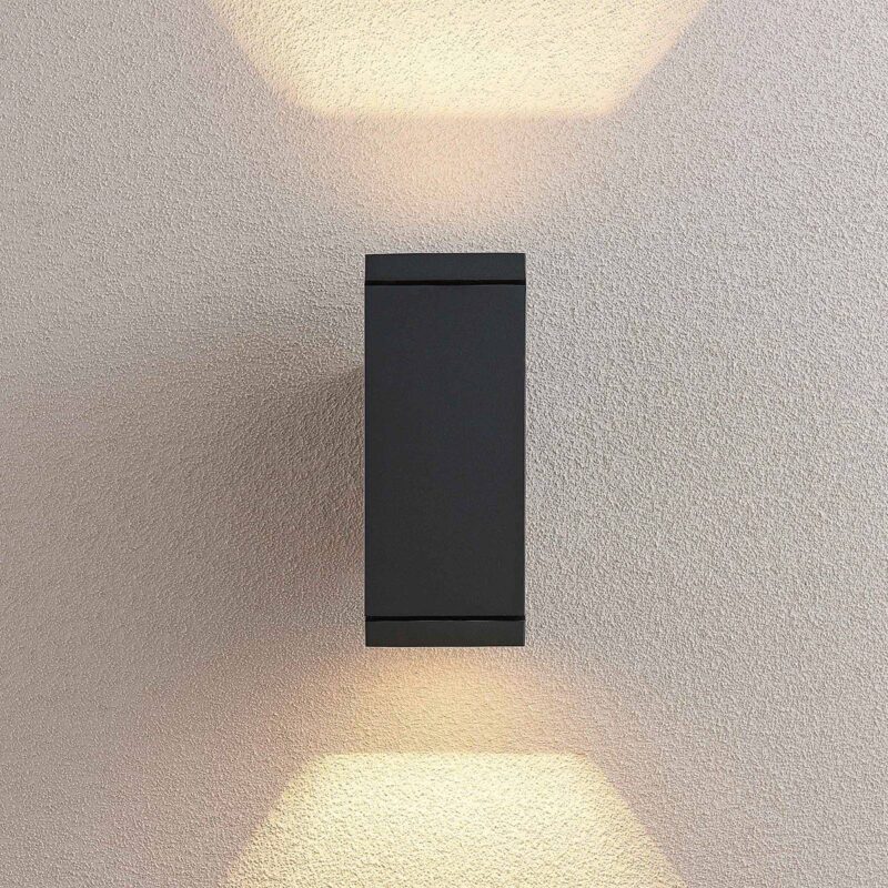 Hranaté vonkajšie nástenné svietidlo Stani s výstupom svetla nahor a nadol Lampa Stani sa hodí do mnohých prostredí, najmä do tých, ktoré stelesňujú moderný štýl. Vonkajšie nástenné svietidlo je vyrobené z hliníkového tela, ktoré má tmavosivý povrch. Vďaka objímkam E27 je možné podľa potreby použiť dve žiarovky, pretože pre túto štandardnú objímku je v súčasnosti veľa variantov žiaroviek. Svetelný výstup je nahor aj nadol, takže sa vytvára príjemná kombinácia z priameho a nepriameho svetla a vizuálne zušľachťuje súčasný dizajn vždy jeden úzky pruh v hornej a dolnej časti. – možnosť plynulého spojenia – stupeň odolnosti proti nárazu IK06