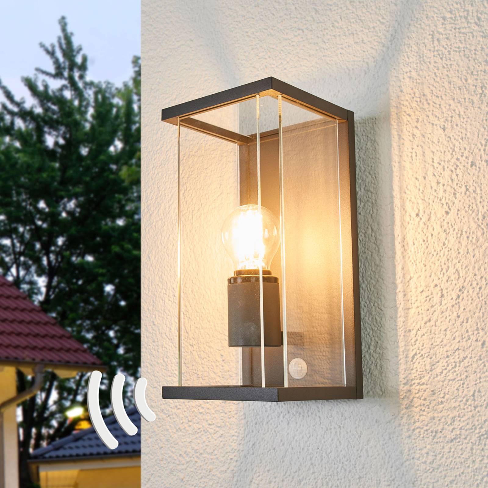 Lucande vonkajšie nástenné svietidlo Annalea, 29 cm, 1 svetlo, IP54, senzor