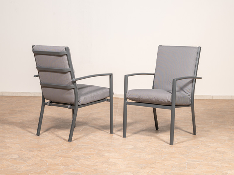 Minimalistická záhradná stolička Lucca. Kvalitnú hlininíkovú konštrukciu doplnia komfortné sedenie, ktoré vám zabezpečí maximálne pohodlie.