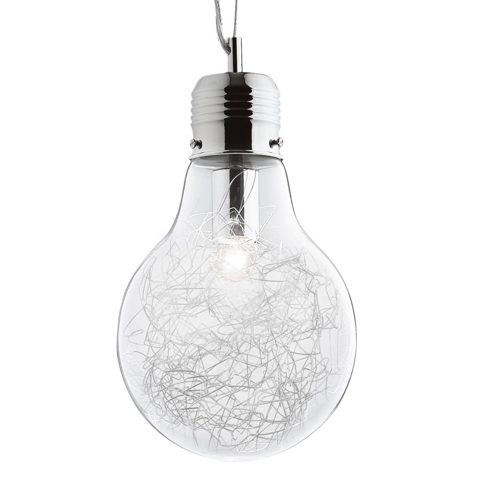 Závesné svietidlo Luce Max s hliníkovými závitmi S touto závesnou lampou v podstate získate nadmernú žiarovku, pretože tvarom nepripomína nič iné. V sklenenej žiarovke, ktorá bola modelovaná na žiarovke, sa nachádzajú závity vyrobené z hliníkového drôtu, ktoré zaisťujú, že svetlo je účinnejšie, pretože sa niekoľkokrát odráža, a preto do miestnosti iskrí. Závesná lampa s kopancom! Sklenené tienidlo je jedinečné, pretože je ručne fúkané. Akékoľvek vzduchové bubliny, ktoré sa môžu objaviť, preto nie sú chybou, ale prejavom remeselnej zručnosti a individuality.