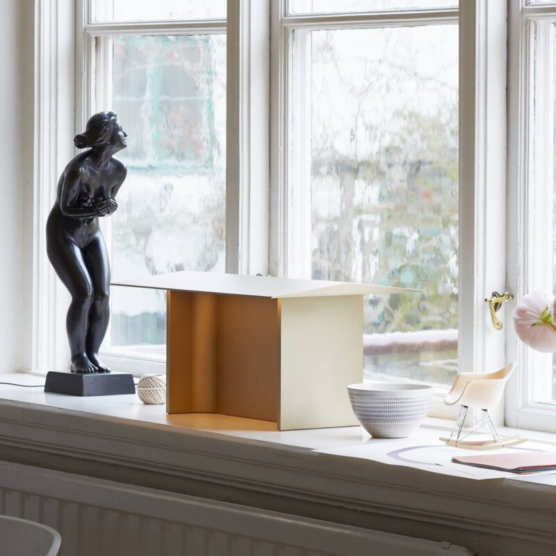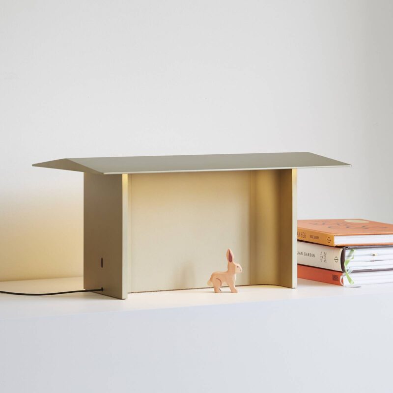 Fienile stolová lampa LED v architektonickom dizajne Nórsky dizajnér Daniel Rybakken navrhol túto neobvyklú stolovú lampu na základe tradičných senných chát vo svojej domovskej krajine. Fienile má plochú strechu, ktorá je po stranách mierne sklonená, dve ohraničujúce steny na dlhých stranách a stredovú priečku. LED diódy sú integrované na spodnej strane strechy, takže sa zdôrazňuje geometrický tvar stolovej lampy a do miestnosti sa vyžaruje nepriame svetlo. Fienile vyrába taliansky výrobca Luceplan . Stolová lampa je vyrobená z jedného hliníkového bloku, ktorý získava svoj konečný tvar v procese CNC frézovania. – Vybavený dotykovým stmievačom