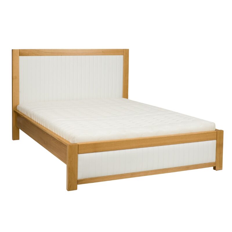 Posteľ LUCIE LK214 je luxusným nábytkom, vyrobeným z prvotriednych materiálov. Prírodné drevo zahrieva interiér a jeho viditeľná kresba zdôrazňuje originalitu. Štýlové čelá postele spájajú čalúnické prvky a masív, pričom sa vytvára unikátny pruhový vzor, ktorý dodáva tomuto nábytku ladnosť a jemnosť. Jedinečný dizajn, prepracované detaily a funkčnosť presvedčia aj najnáročnejšieho zákazníka.Nábytok je vyrobený z dubového masívneho dreva v prírodnom dubovom odtieni. Viditeľnosť štruktúry dreva vytvára efektný vzor a spája viacero prírodných odtieňov masívu. Farba na zakúpenom výrobku môže mať preto odchylky od zobrazenia na fotografii. Na čalúnenie bola použitá kvalitná látka Casablanca 2301. Súčasťou postele nie je rošt ani matrac. Ku posteli odporúčame zakúpiť úložný priestor LUCIE LK200, vďaka ktorému si vytvoríte ďalší odkladací priestor, napr. na periny a vankúše. Rozmery (š/h/v): 151 x 209 x 120 cm. Spacia plocha je 140 x 200 cm. V našej ponuke nájdete aj ďalšie rozmery postele LUCIE. Dodávame v demonte.